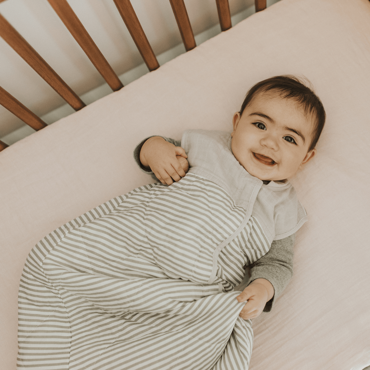 Cotton Muslin Quilted Sleep Bag - Grey Stripe - HoneyBug