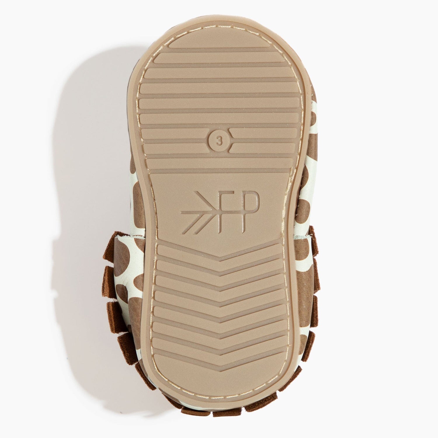 Suede Cow Print Moccasin Baby Shoe - Soft Sole / 1 is backordered and will ship as soon as it is back in stock.