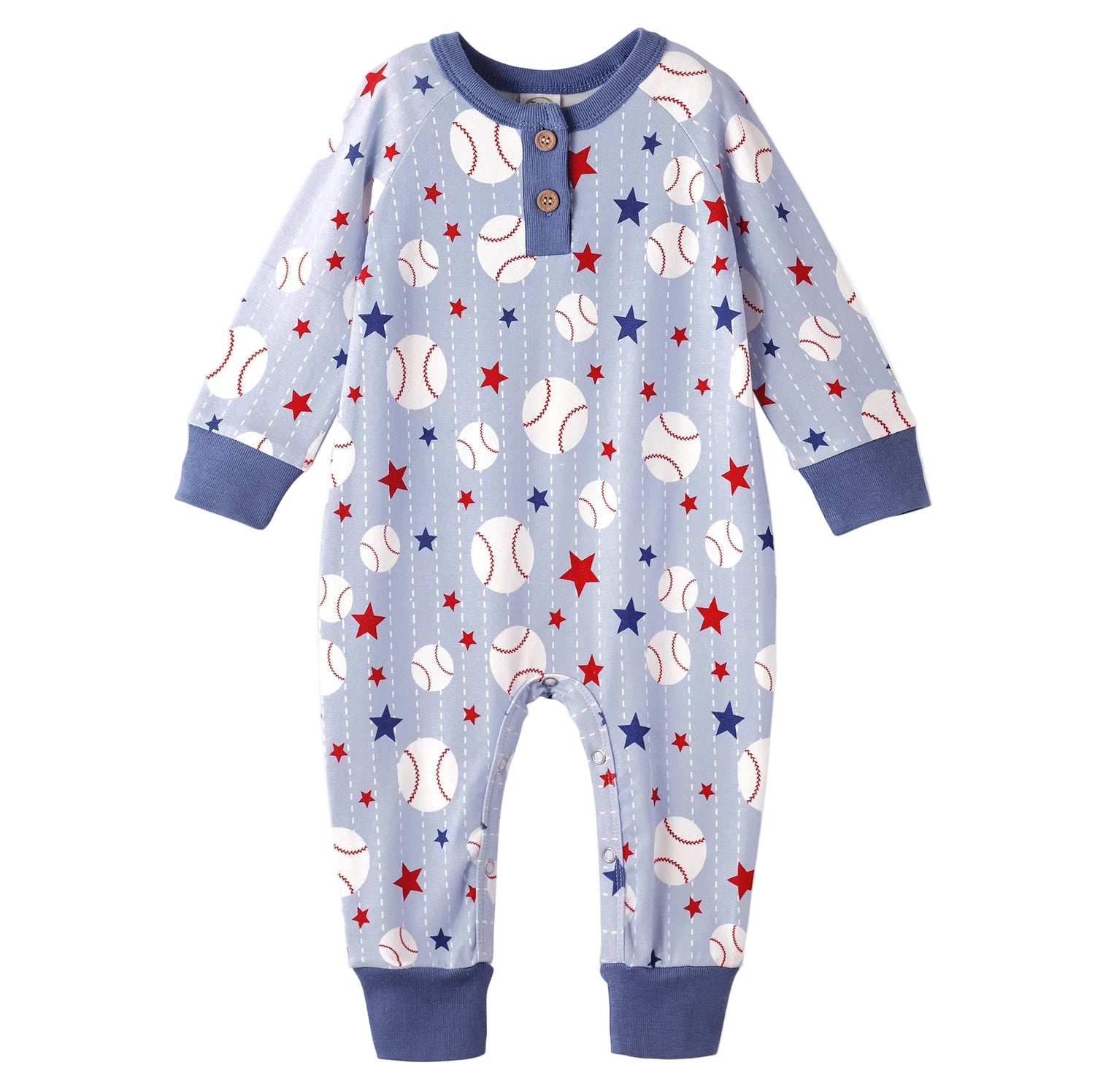 Step up to the plate in cozy style with the Grand Slam Henley Romper! Crafted from an ultra-soft bamboo-cotton-spandex blend, this all-star outfit is breathable, absorbent, hypoallergenic, and eco-friendly—perfect for little rookies. Featuring a classic Henley neckline with buttons and handy snaps underneath, it's a breeze to dress and change. A home run for comfort, playtime, and all-day cuddles!⚾