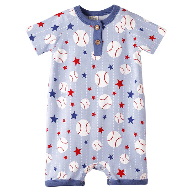 Grand Slam Baseball Bamboo Henley Shortall Romper - 0-3M is backordered and will ship as soon as it is back in stock.