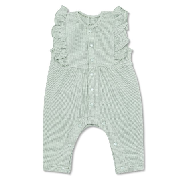 Waffle Ruffle Coverall - Sage - 3-6 mo. / Sage is backordered and will ship as soon as it is back in stock.