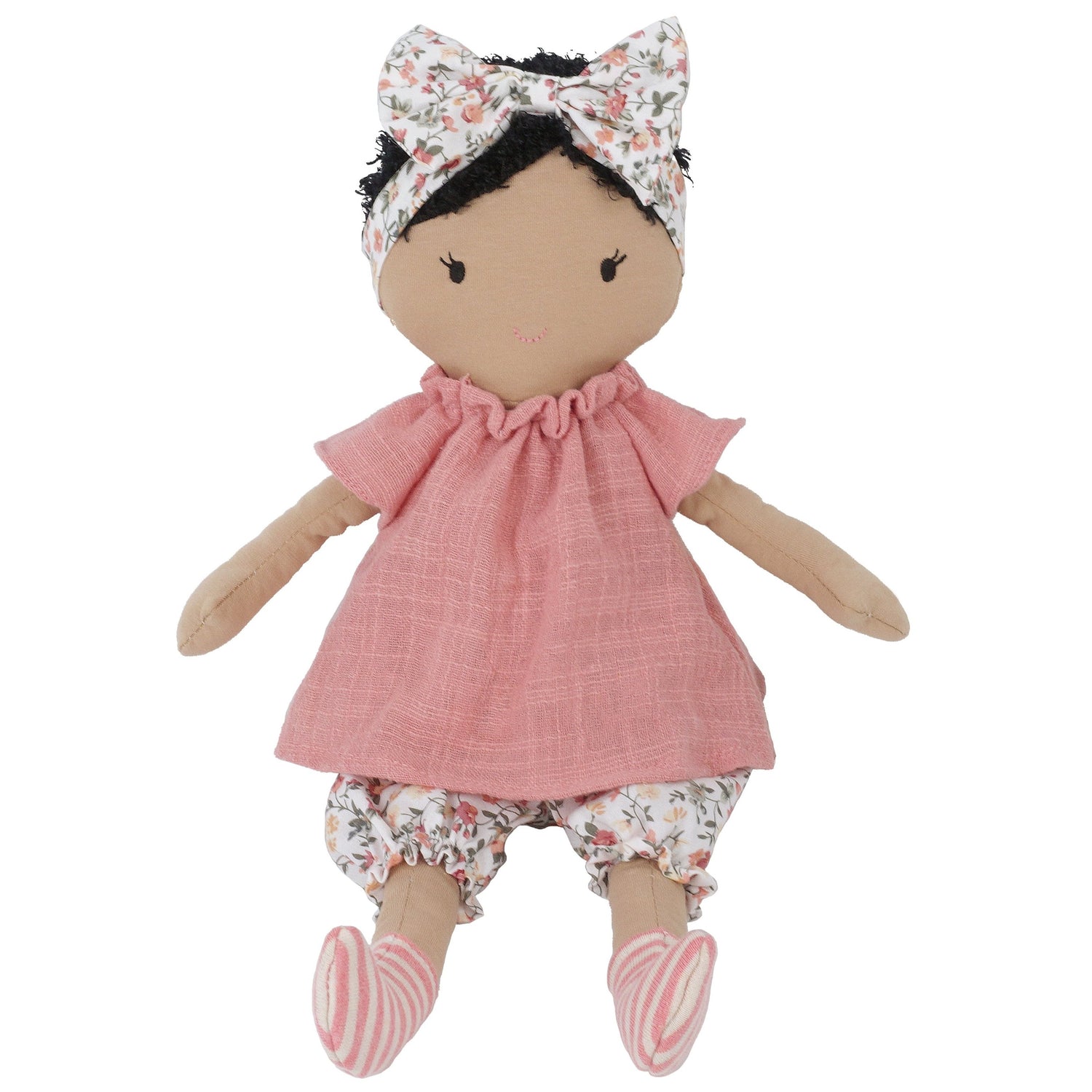 A child’s first baby doll is a big deal. Meet Marie, our African American soft baby doll who will become an instant hit in the nursery with her pretty pink swing top, floral bloomers with matching head wrap, and striped knit socks. Removable clothing makes this soft-bodied baby doll a teaching aid in how to get dressed. Ready to be hugged and loved, our soft baby doll is crafted of a supersoft, cuddle-perfect fabric.  FYI: Marie is best friends with our soft-bodied baby doll Poppy, if you’re looking for a gift that’s twice as nice.