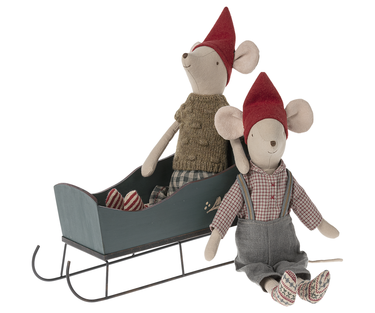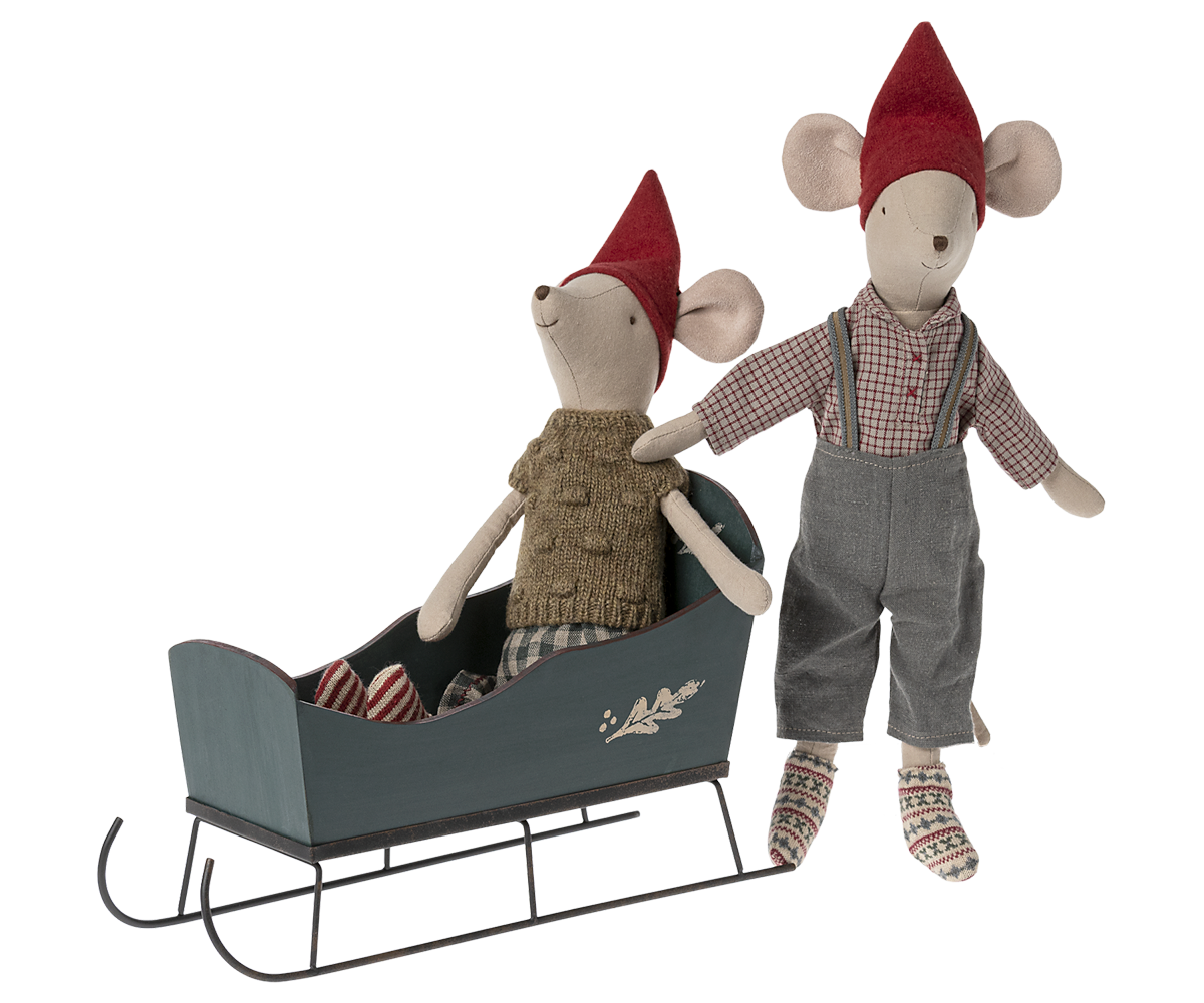 A lovely sleigh with a soft mattress to keep the passengers warm and comfortable during the ride. This sleigh fits the medium mice perfectly or any other in similar size. It has beautiful hand-painted details - variation may occur.