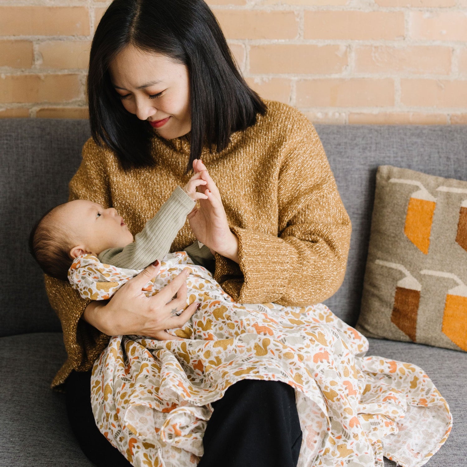 Featuring hand-painted prints, this versatile swaddle is an everyday essential. Crafted in lightweight and breathable cotton muslin, ideal for swaddling, nursing, cuddling and more.