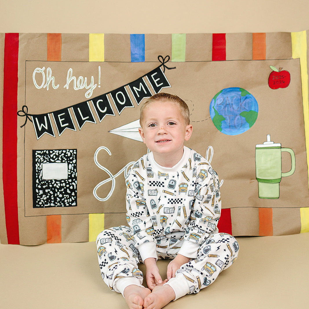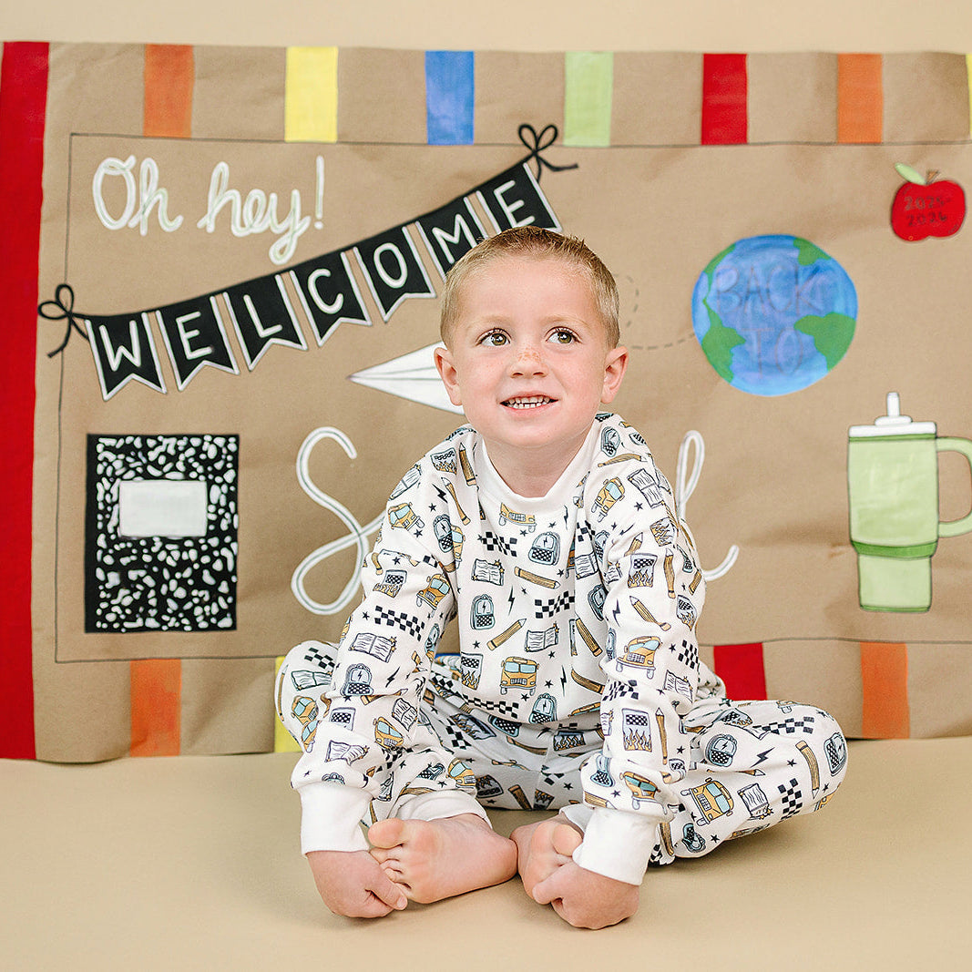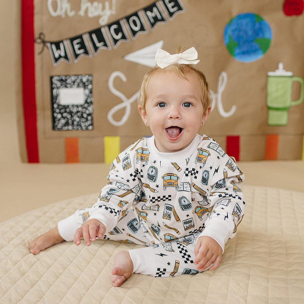 Notebooks, pencils, lightning bolts, and school buses. The Jogger Set Back 2 Cool brings all the classroom energy in one bold, comfy set. Perfect for first day pics, hallway walks, and snack-time chill.