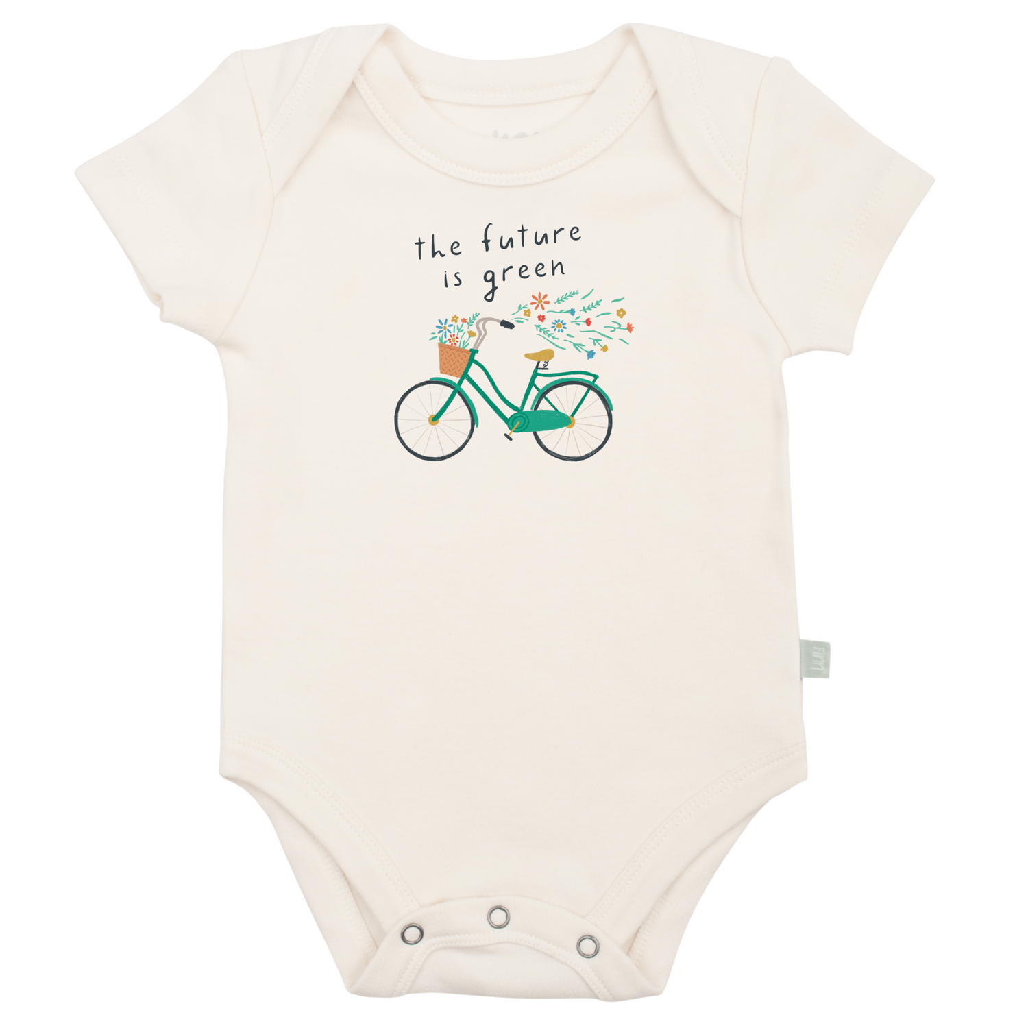Celebrate spring—and your child's bright future—with our new Earth Day-inspired bodysuit design! It features a sweet drawing of a vintage bicycle bedecked with a flower-filled basket. And, made from buttery-soft organic cotton, our bodysuits feature easy-snap fasteners for quick access when changing or bathing.
