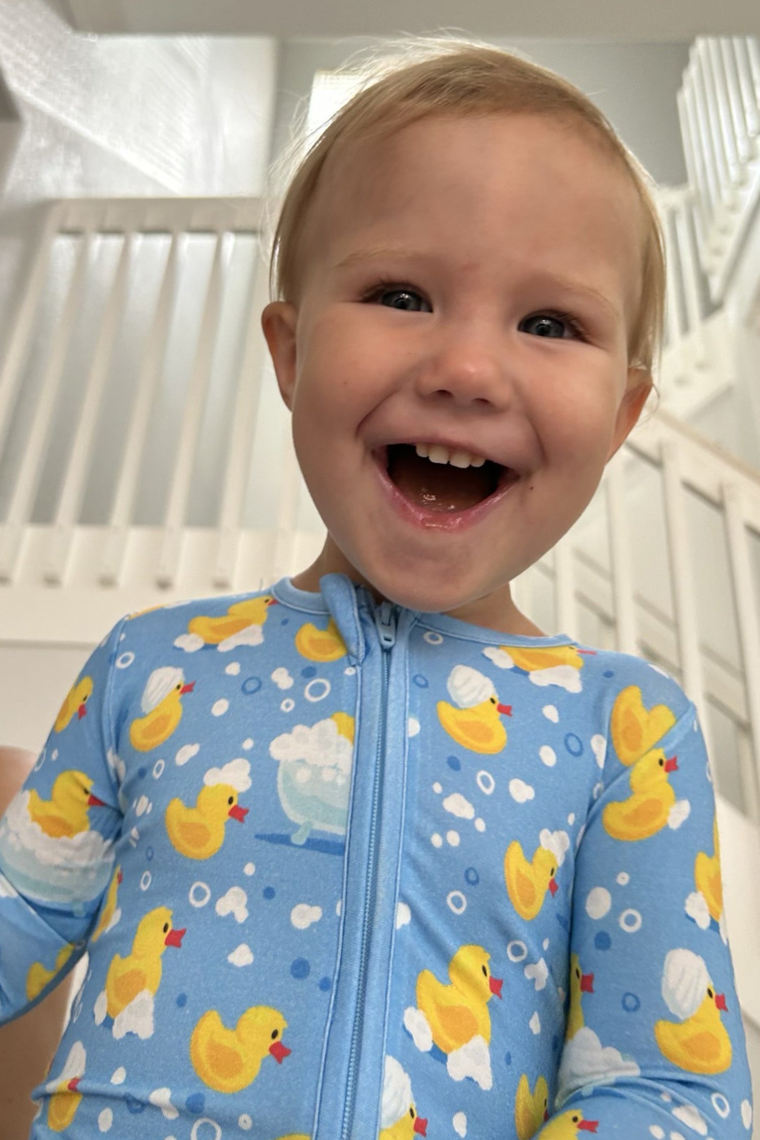 Soft & Stretchy Zipper Footie - Rubber Duckies