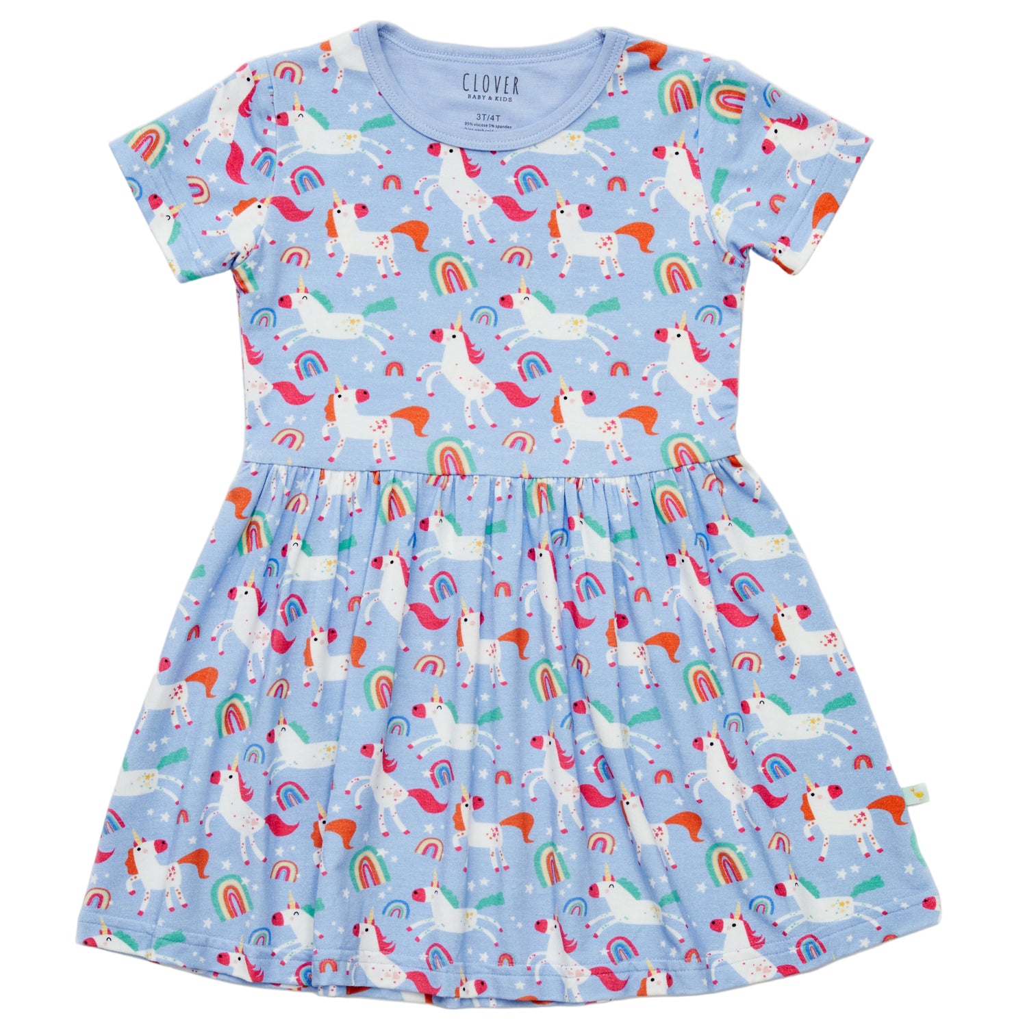 Stretchy Short Sleeve Twirl Dress - Unicorns - HoneyBug