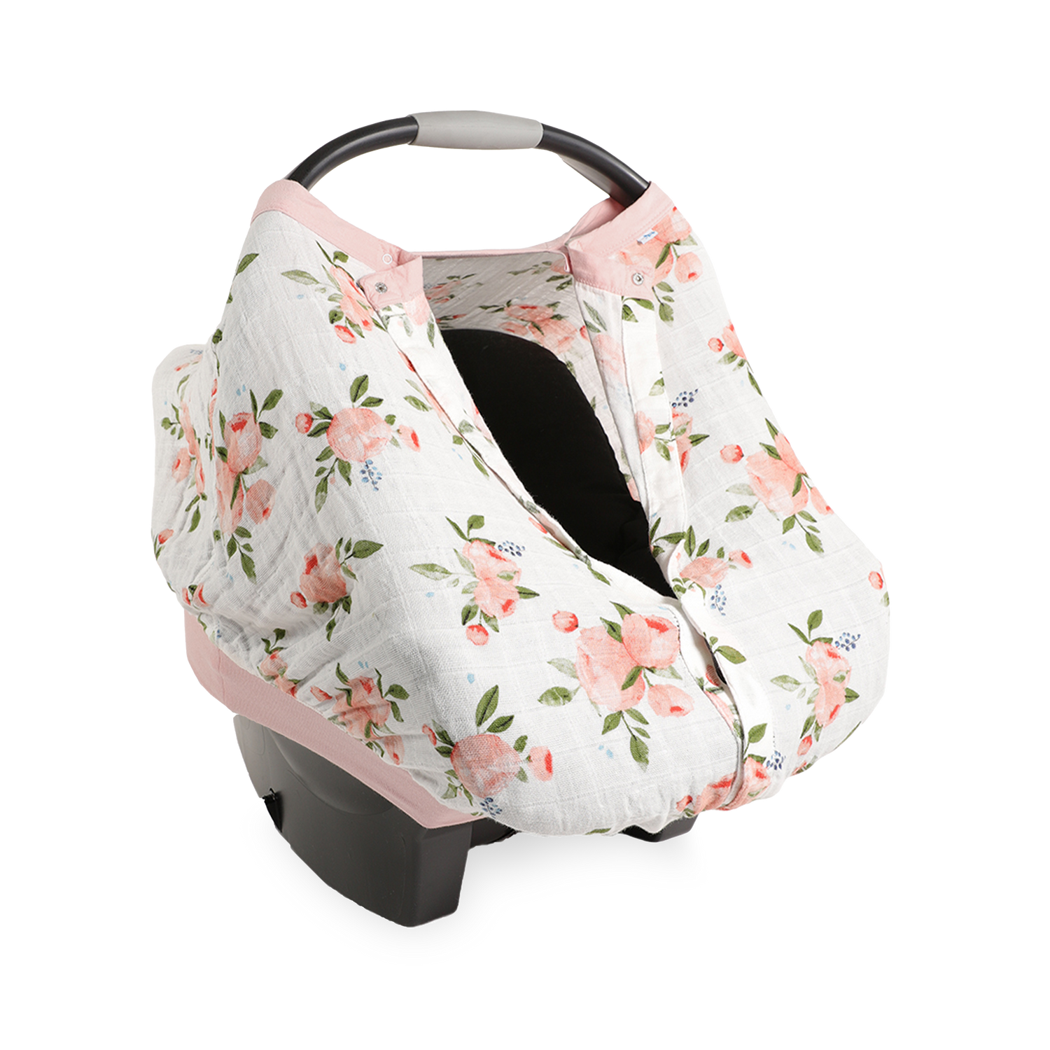 Cotton Muslin Car Seat Canopy - Watercolor Roses