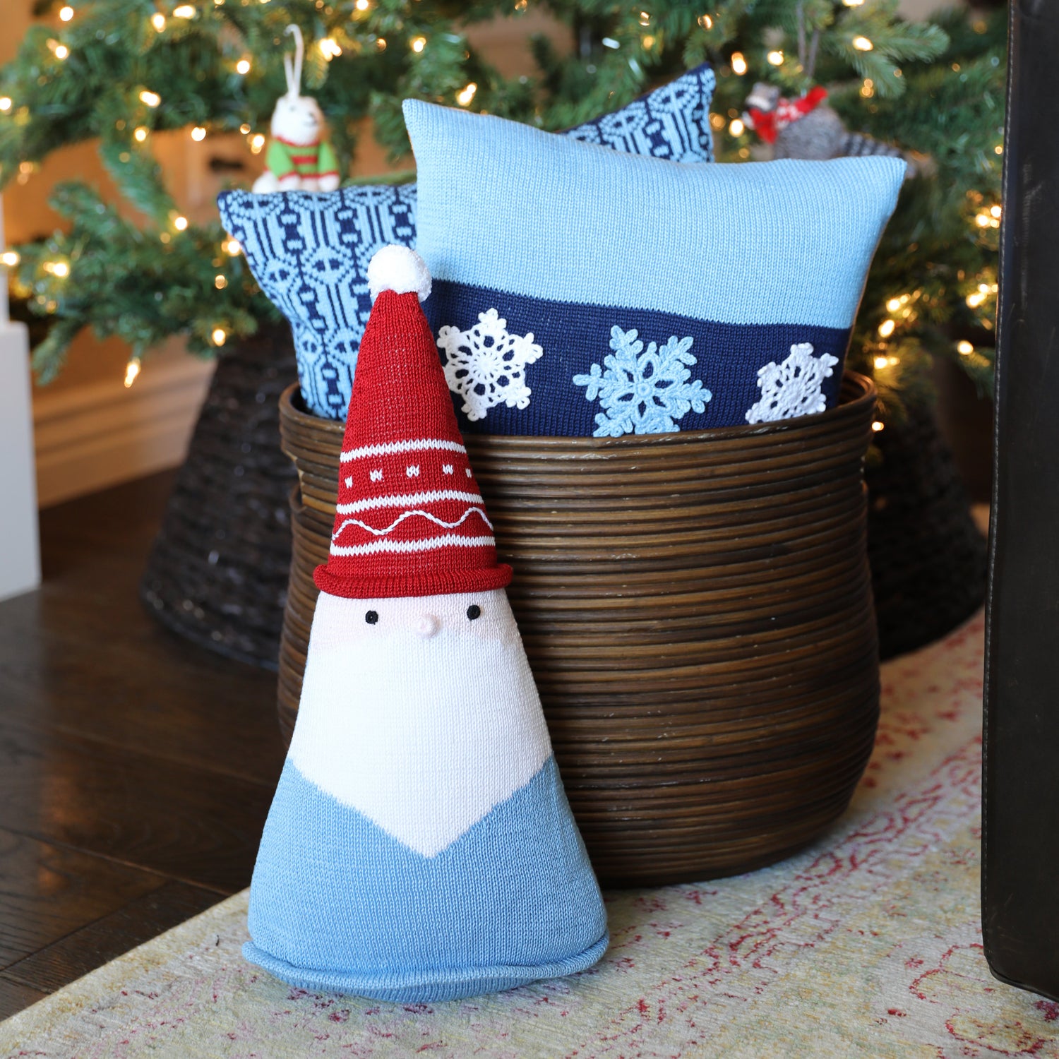 Celebrate the holiday season with this charming knit Santa throw pillow. Featuring a minimalist design with a cozy knit texture and unique shape, this pillow brings the festive cheer of Santa Claus into your home.