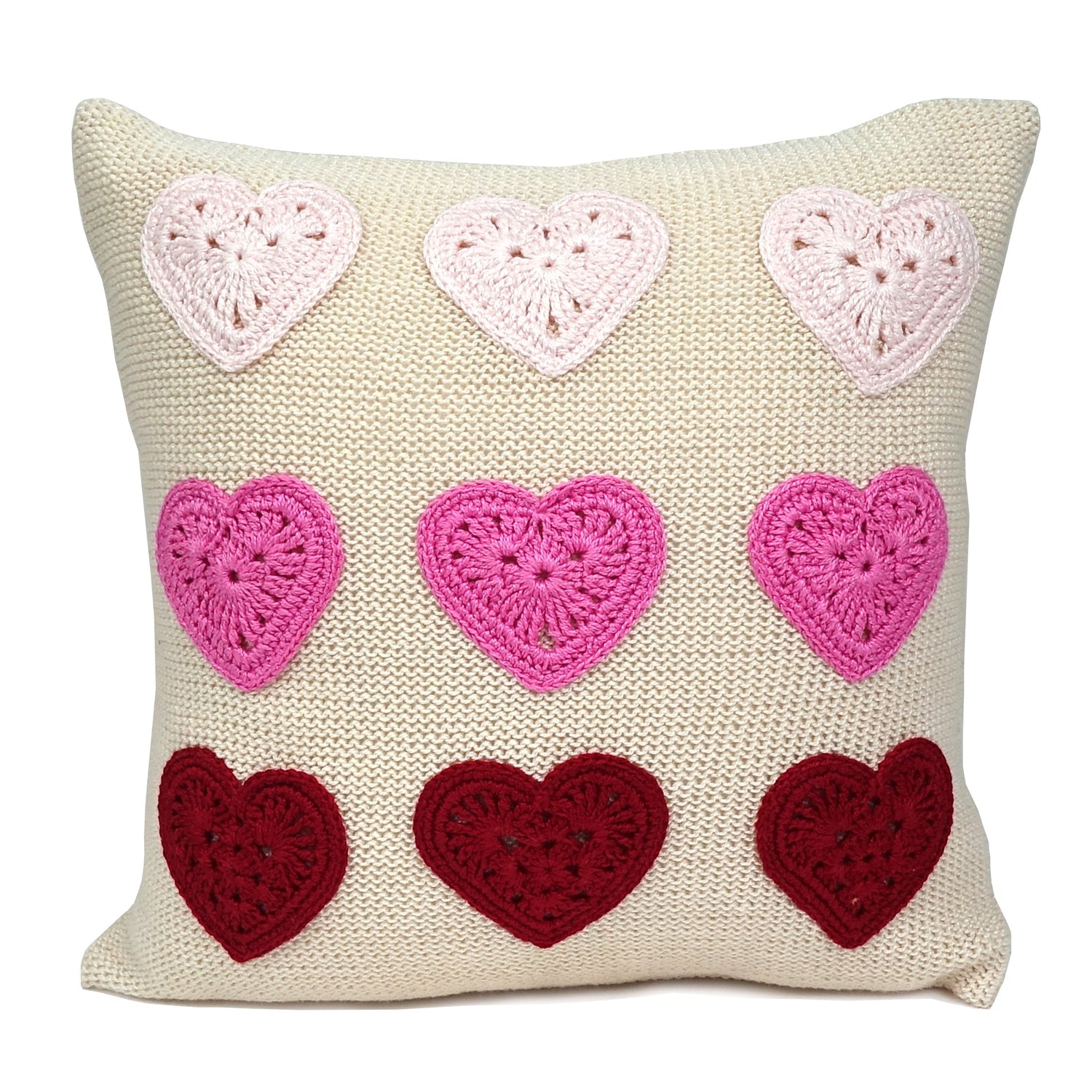 Pillow adorned with hearts, perfect for showing your love on Valentine's Day, or any day.