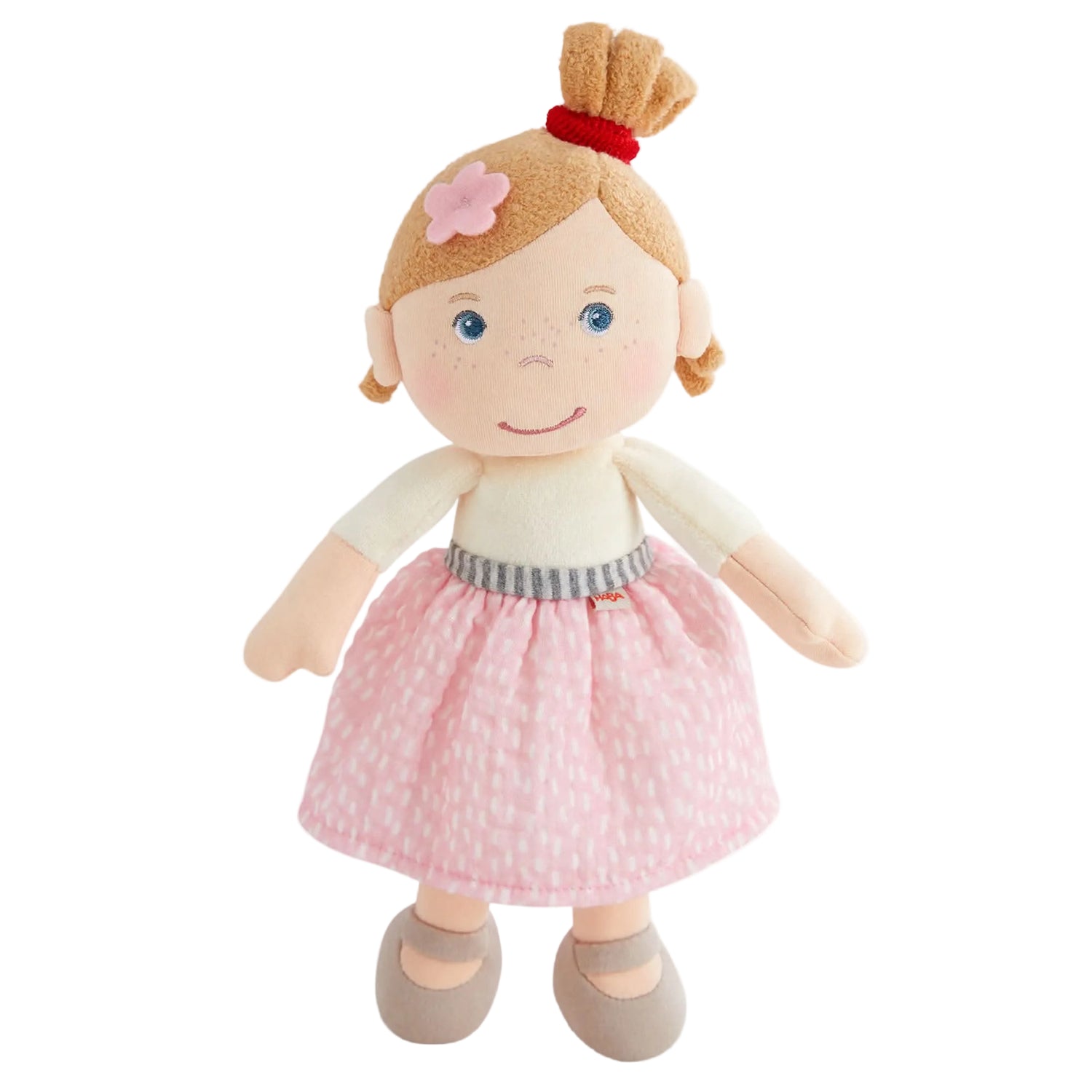Lauren is the perfect companion for playtime adventures, bedtime snuggles, and everything in between! With her soft, huggable body and charming outfit—including gray Mary Jane shoes, a pink skirt, and a white tee—Lauren is designed to grow with little ones. Her sandy blonde hair is adorned with a sweet pink flower, making her a delightful addition to any doll collection.