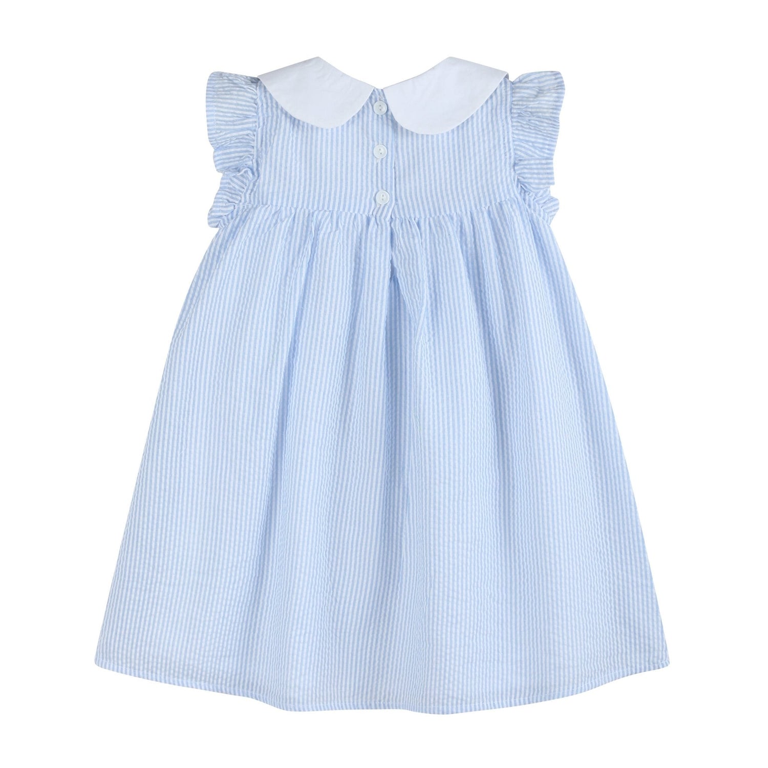 The Blue and Pink Bow Ruffle Dress is as sweet as can be! This darling dress features a crisp white collar, flutter sleeves, and ruffle details that add a touch of playful charm. Embroidered pink bows cascade down the center, making it an irresistible choice for any little fashionista. Perfect for family outings, parties, or just twirling around, this dress is sure to make her feel extra special wherever she goes!