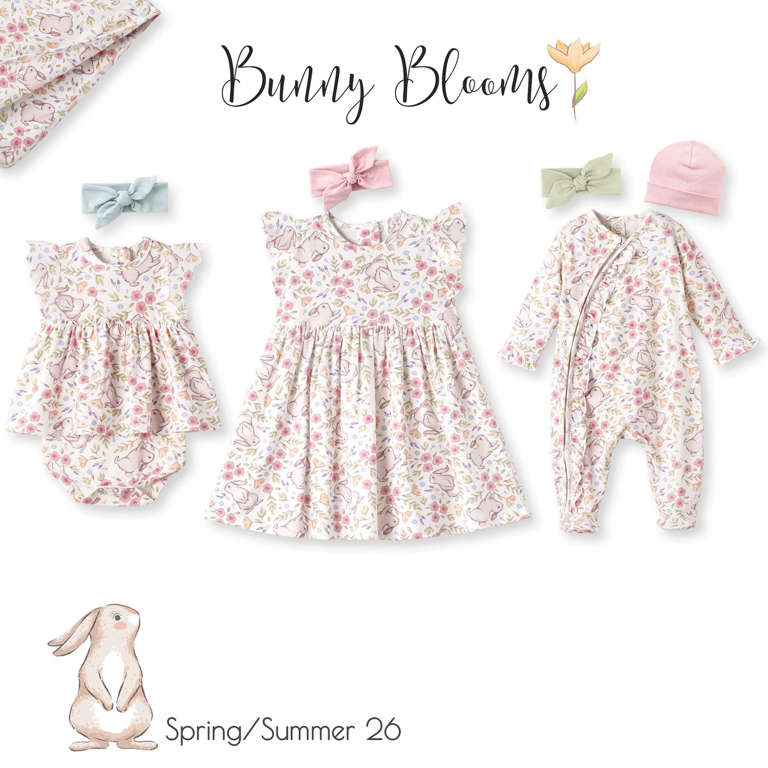 Perfect for Easter snuggles and springtime memories, the Bunny Blooms zipper romper is crafted from an ultra-soft bamboo-spandex blend that’s breathable, hypoallergenic, and eco-friendly. Adorned with a sweet bunny-and-blooms print, this cozy piece features a full-length front zipper with a protective neck guard for quick, gentle changes. A delicate ruffle trim adds just the right touch of flair, making it a charming choice for celebrating baby’s first Easter in comfort and style.