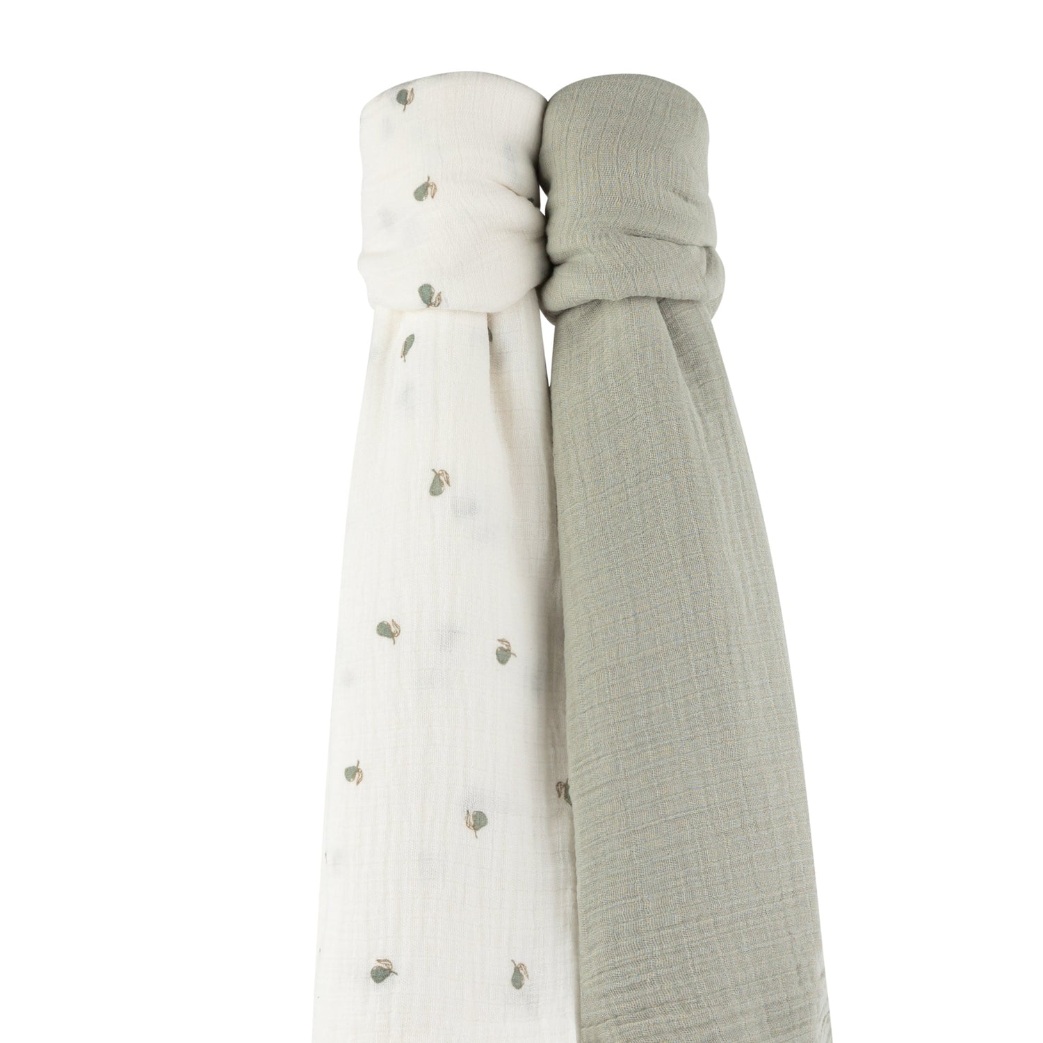 2 Pack Cotton Muslin Swaddle Blanket - Sage Pear & Solid Sage
