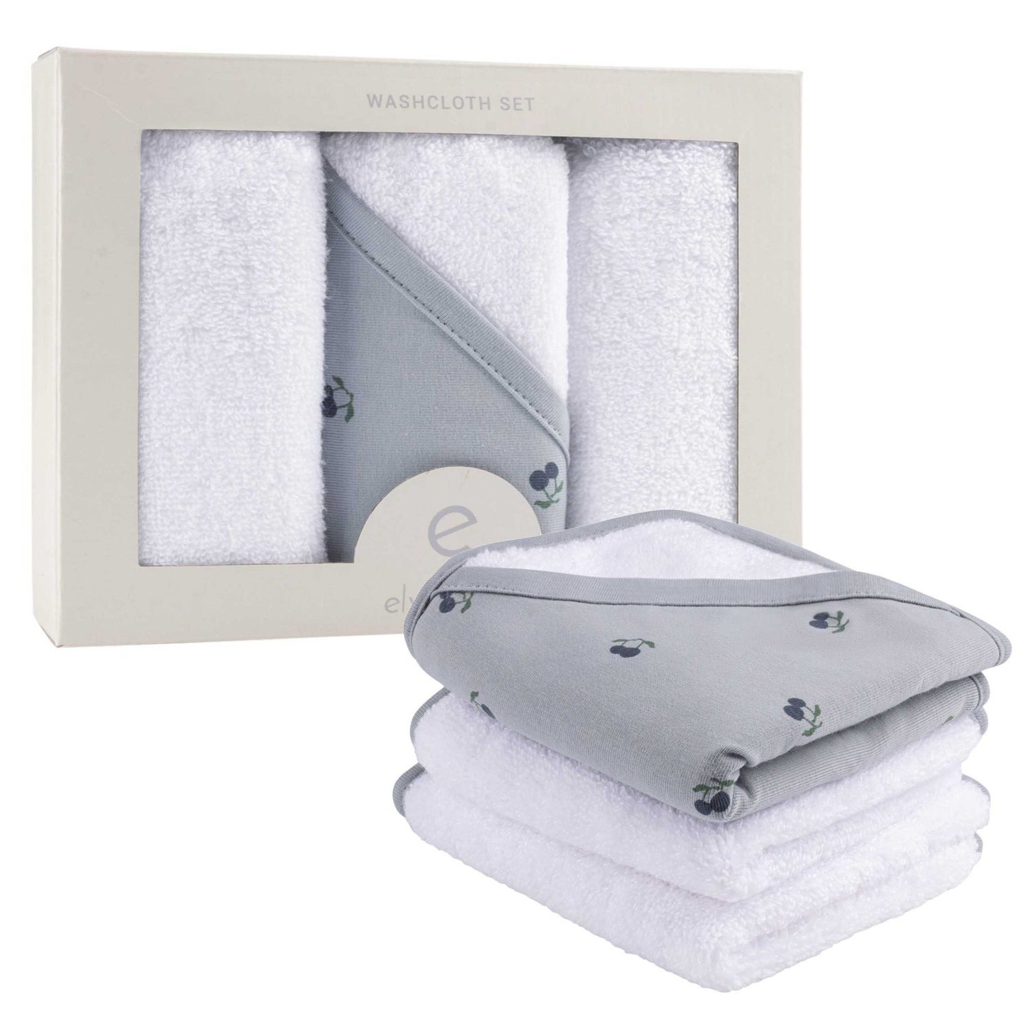 - Includes: (3) 10” x 10” cotton terry washcloths.