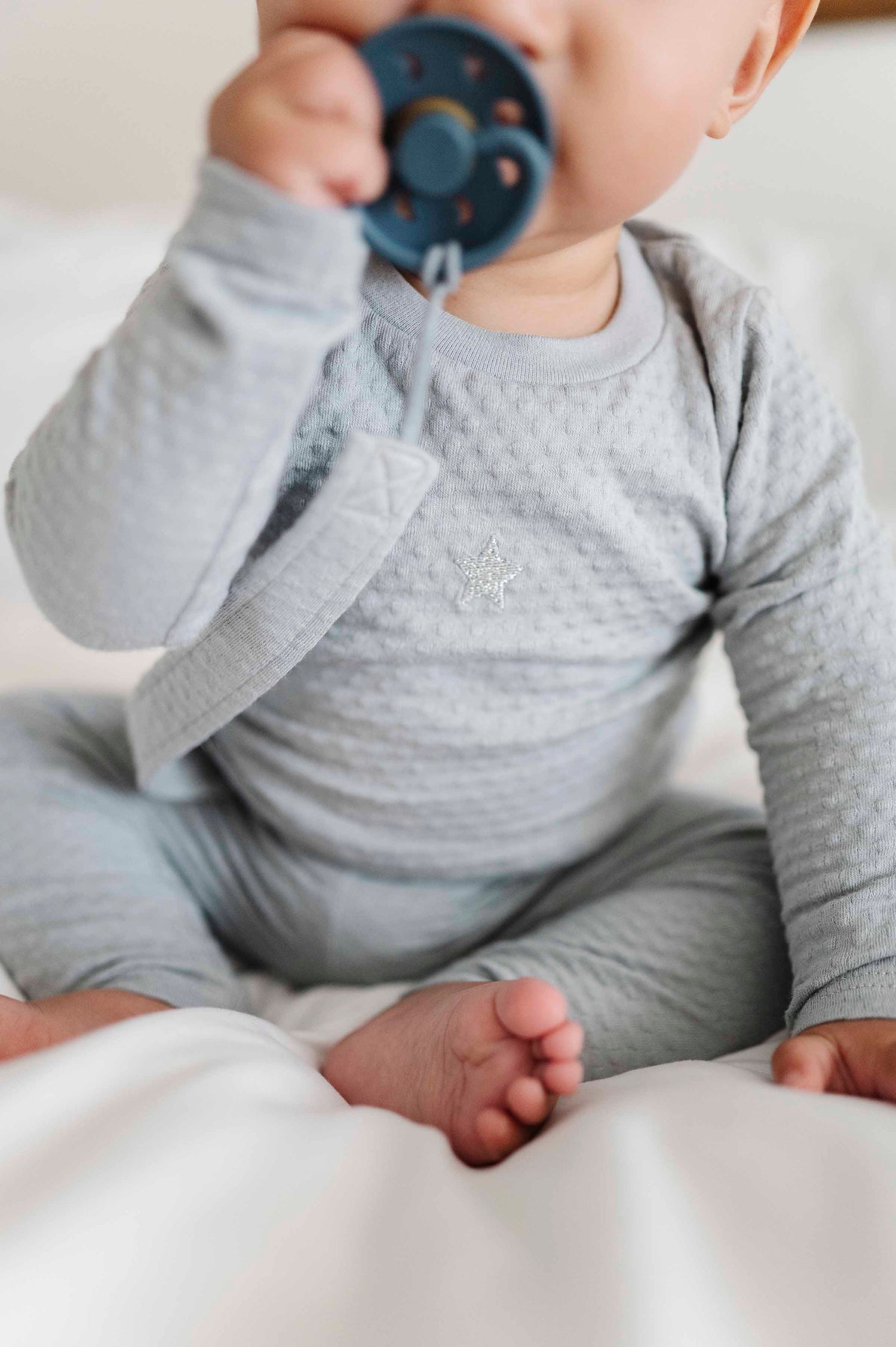 Keep your little one’s pacifier close at hand with our charming Paci Clip from the Embroidered Heart and Star Collection. Crafted from soft, durable cotton, this clip features adorable heart and star embroidery that adds a touch of whimsy to your baby’s essentials. The secure clasp attaches easily to clothing, preventing lost pacifiers and ensuring hygiene. Functional and stylish, this paci clip is a practical addition to your baby gear and makes a delightful gift for new parents.