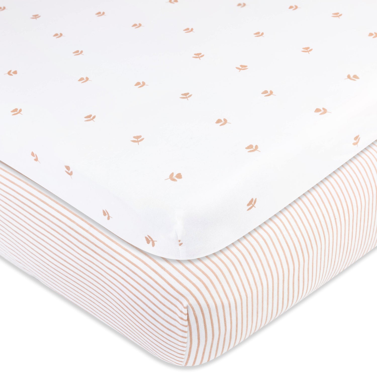 Pack N Play I Portable Crib Sheet Set - Mauve Tulip & Stripes