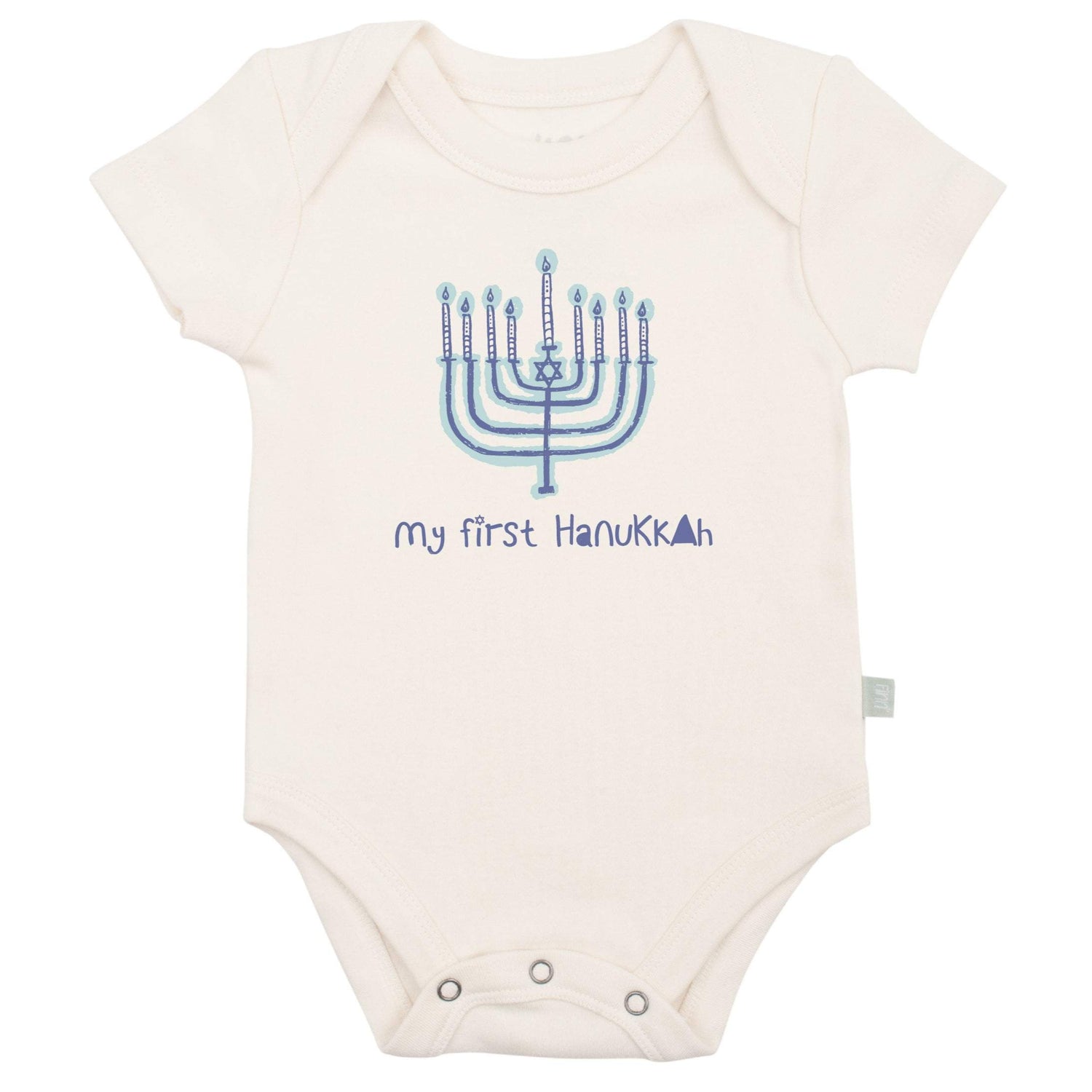 Commemorate baby's first Hanukkah in style with this festive bodysuit. It's also great for photo opps—especially those that might end up on holiday cards! This bodysuit will keep your little one comfy all season long (and it makes a great gift too!). Made from buttery-soft organic cotton, it features easy-snap fasteners for quick access when changing or bathing.
