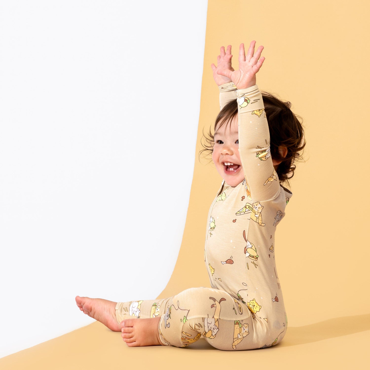 Snuggle up in purr-fectly sweet style with our Foodie Cats Bamboo Convertible Footie! Featuring an array of charming feline foodies enjoying their favorite treats, this convertible footie is made from ultra-soft bamboo fabric for the coziest sleep. Whether your little one loves pizza, donuts, or ice cream, they'll adore the adorable prints on these footie pajamas. With snaps for easy diaper changes and a convertible design for versatile wear, these footies are as practical as they are cute. Treat your little foodie to the ultimate in comfort and cuteness with our Foodie Cats Bamboo Convertible Footie!