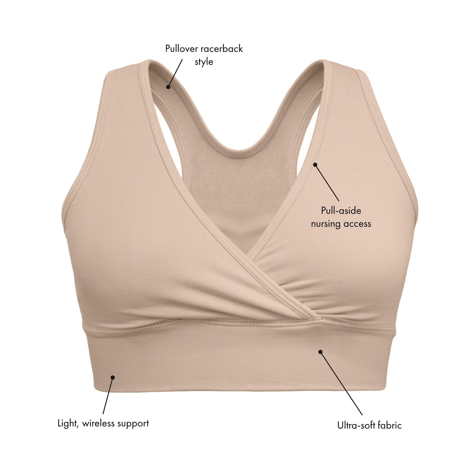 Simplicity at its finest. The fan-favorite French Terry Bra features a simple crossover design and super-soft, stretchy fabric - perfect for before and after baby. This padding-free lounge bra pulls aside for nursing and skin-to-skin contact.