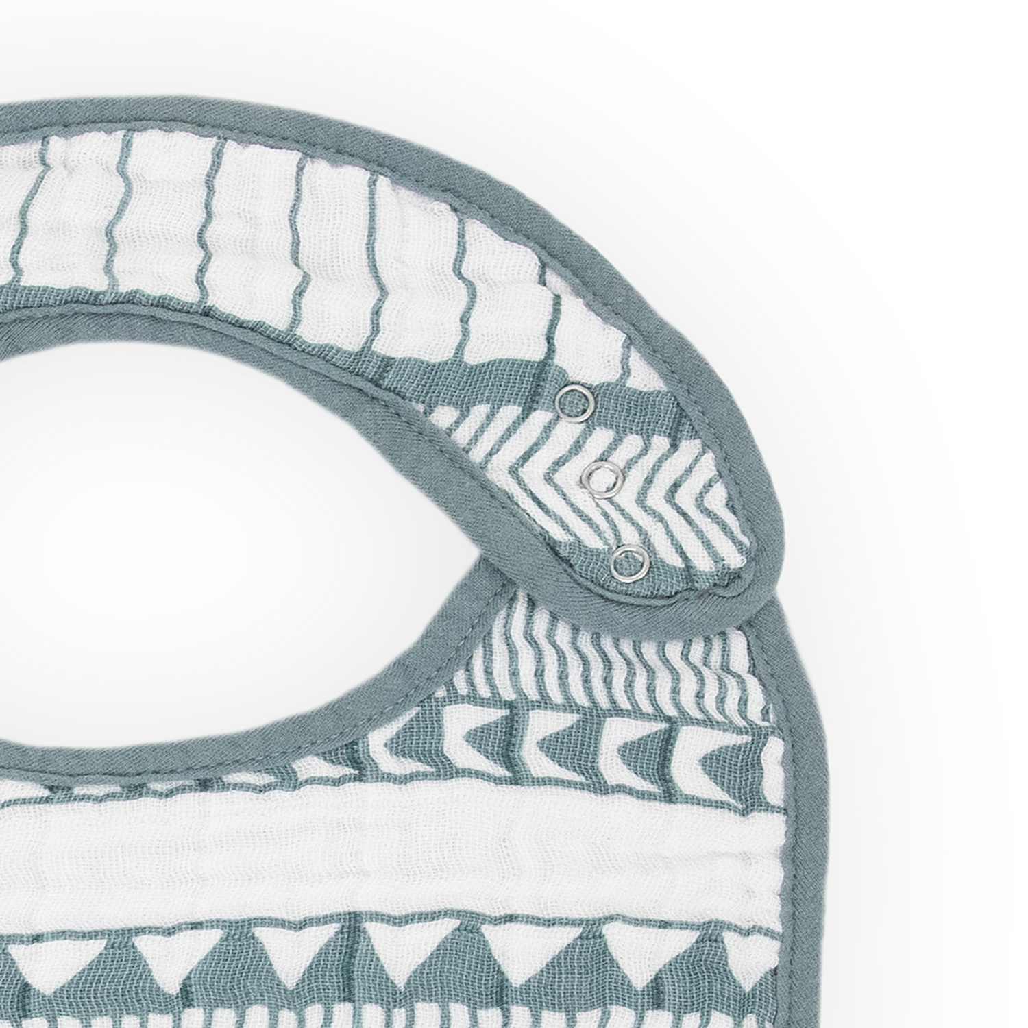 Soft and absorbent, our multi-layer bibs are built to handle all of baby's spills and messes. Featuring three unique, hand-painted prints and a snap-on function to ensure a snug fit that grows with your baby.