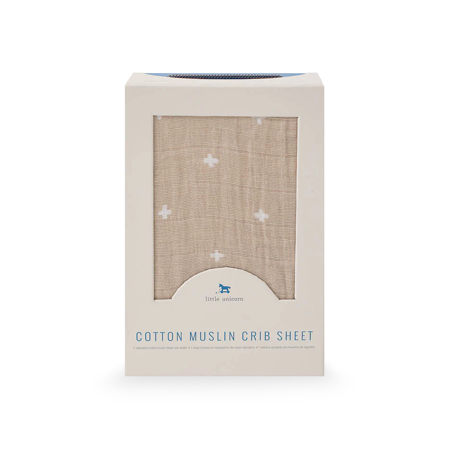 Cotton Muslin Crib Sheet - Taupe Cross - HoneyBug