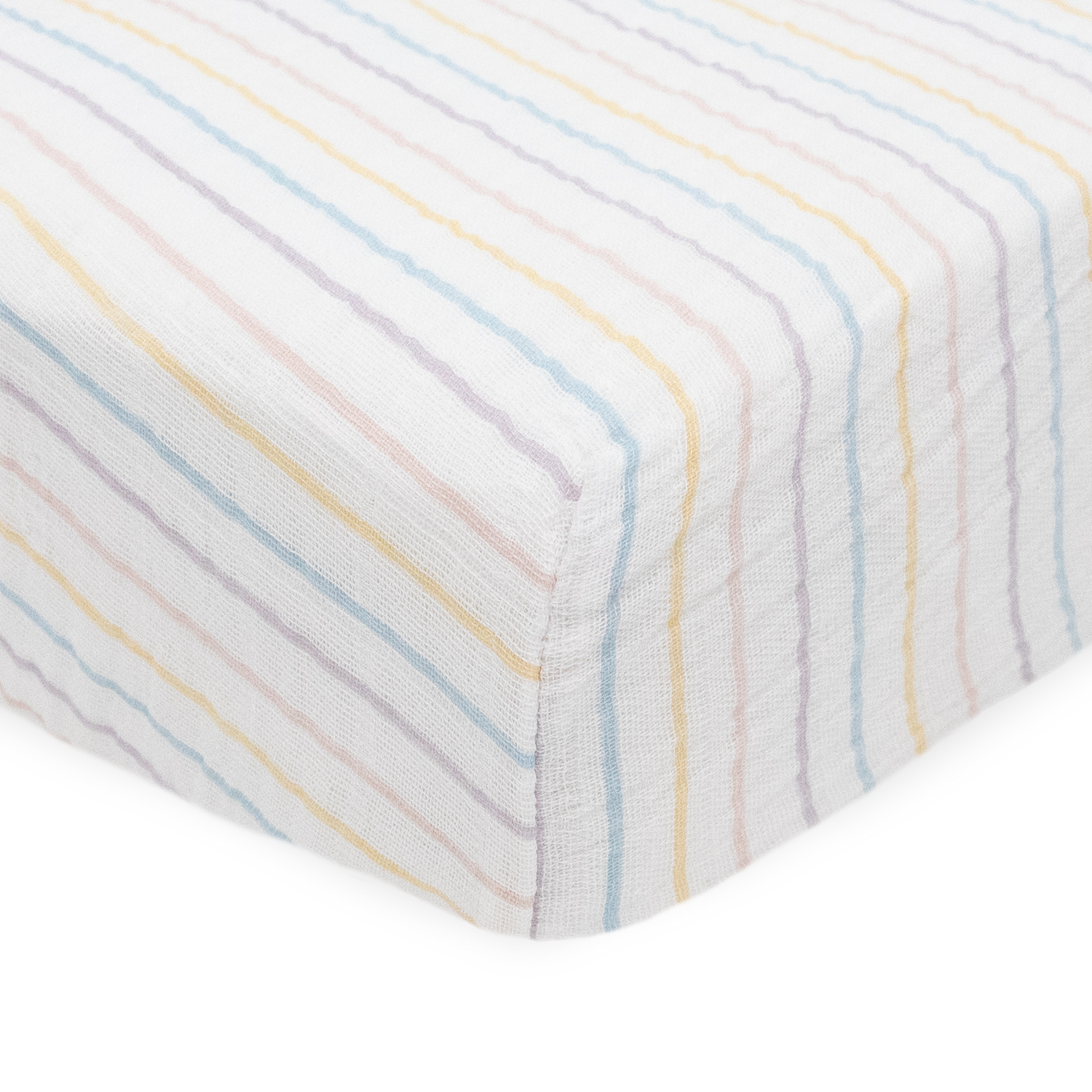 Cotton Muslin Crib Sheet - Unicorn Stripe - Unicorn Stripe is backordered and will ship as soon as it is back in stock.