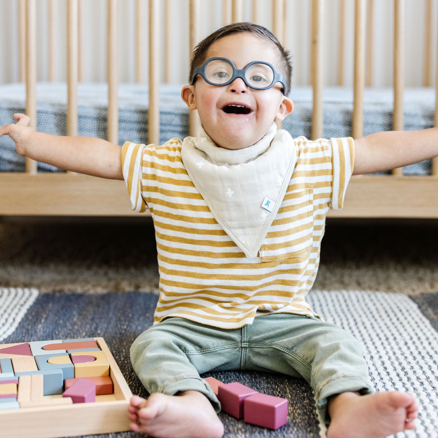 Cotton Muslin + Fleece Bandana Bib 4 Pack - Taupe Cross - HoneyBug