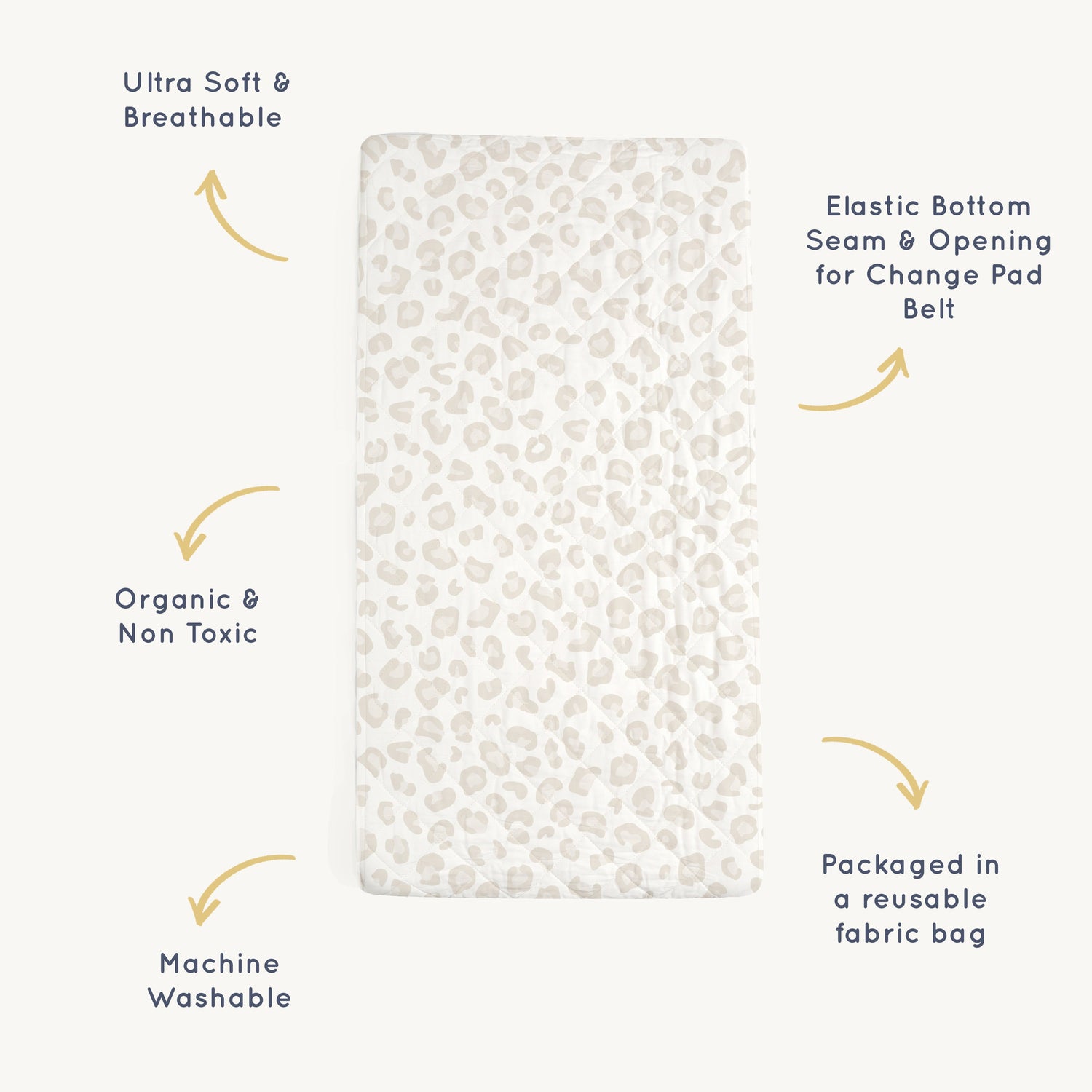 Who doesn't love a cute nursery! Add a touch of elegance to your changing station with our gorgeous quilted organic cotton changing pad cover. It always finds its place in the modern houses' decor. The cover, made of organic cotton sateen with organic cotton filling provides the softest surface and quietest comfort for your little one to get changed on. Gusseted construction and an elasticized hem makes it a great fit or most standard changing pads.