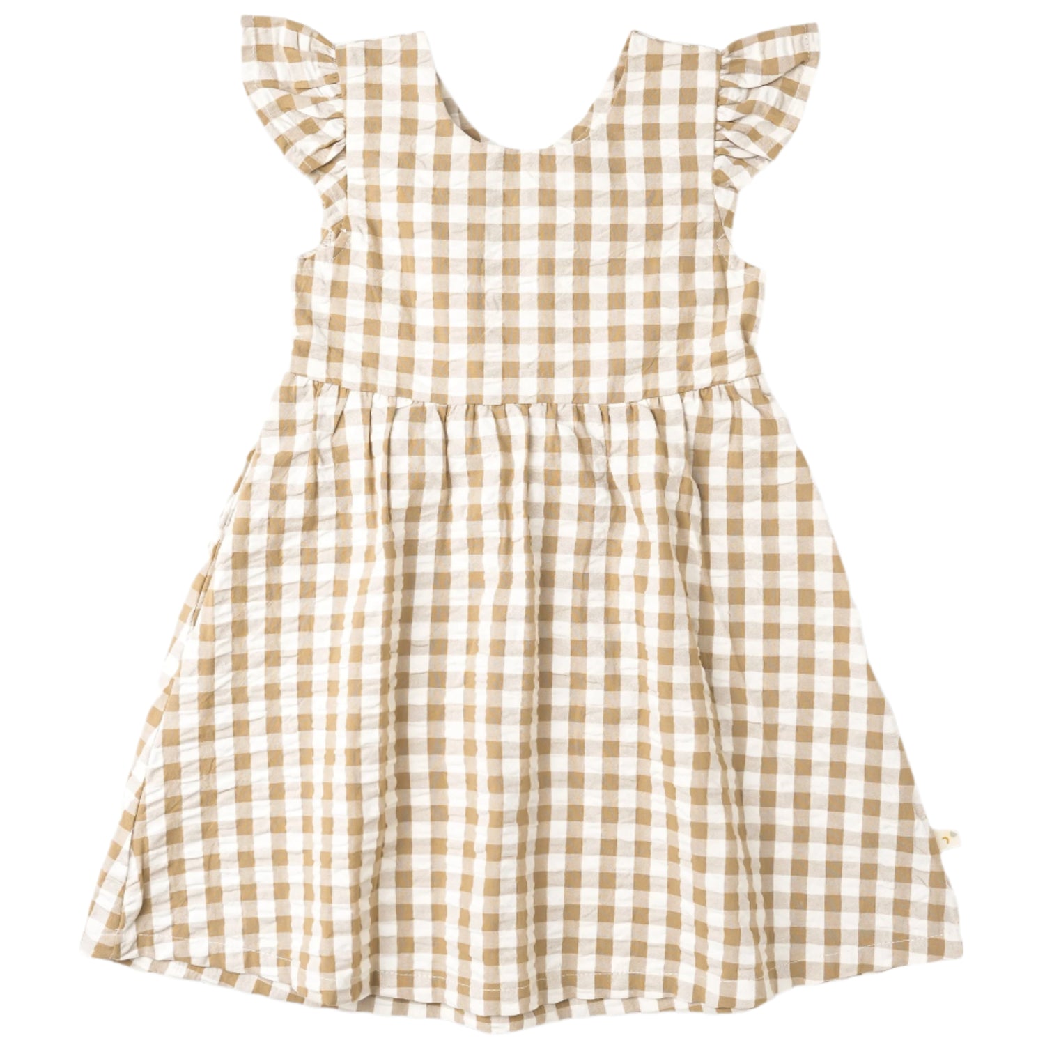 Organic Flutter Summer Dress - Brown Chequered - HoneyBug