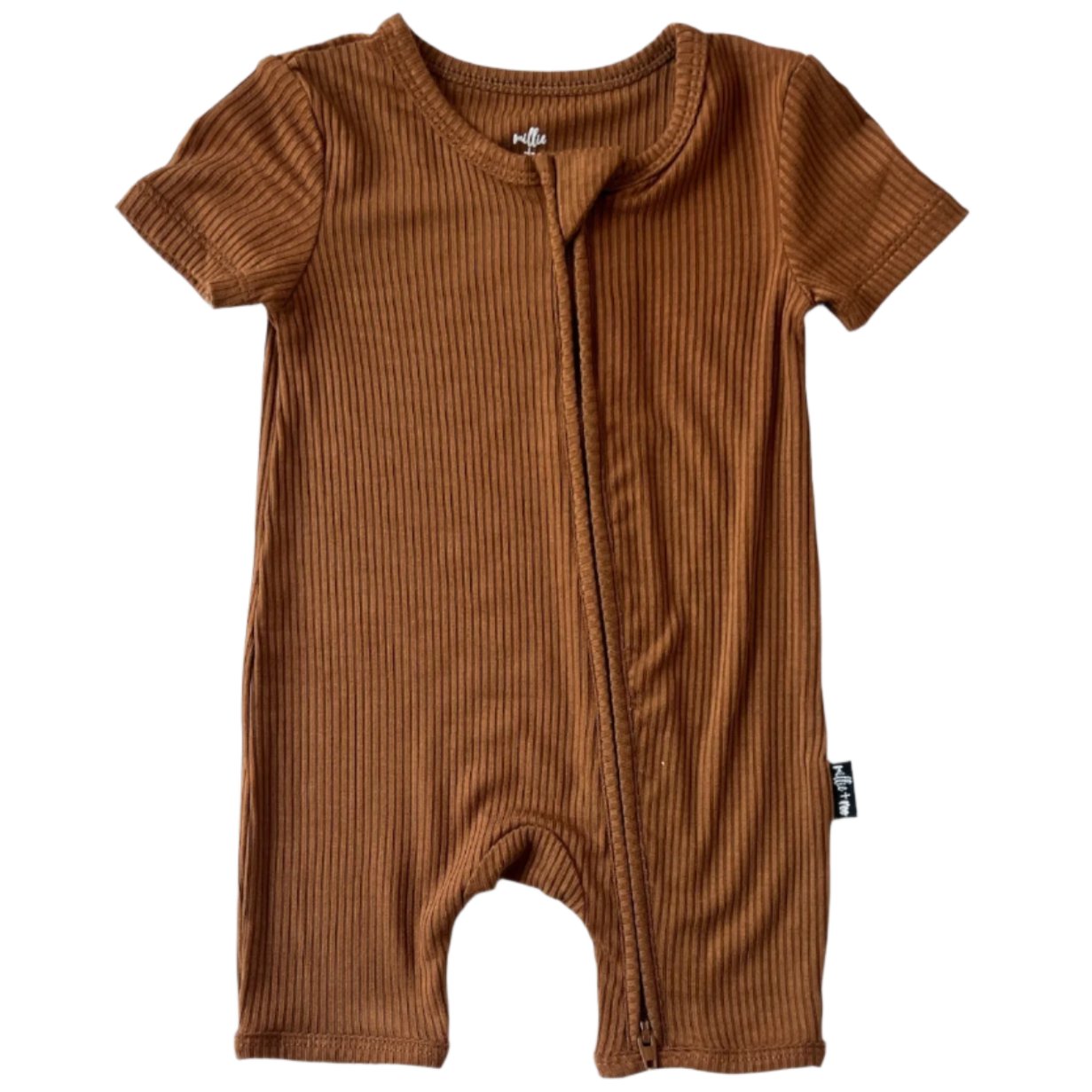 SHORTIE ZIP ROMPER - Bark Ribbed
