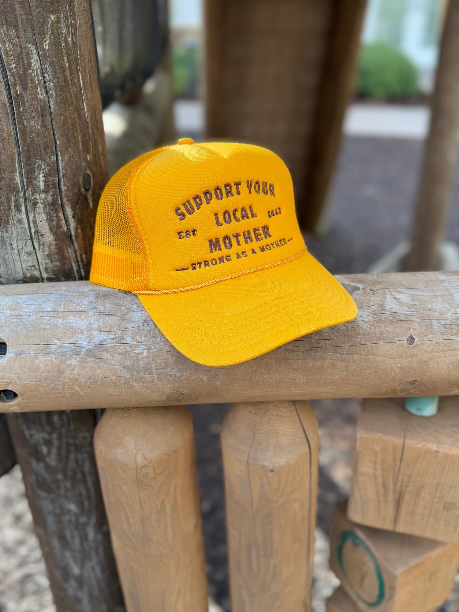 Introducing the Support Your Local Mother trucker hat in Yellow- because #momsneedmoms.