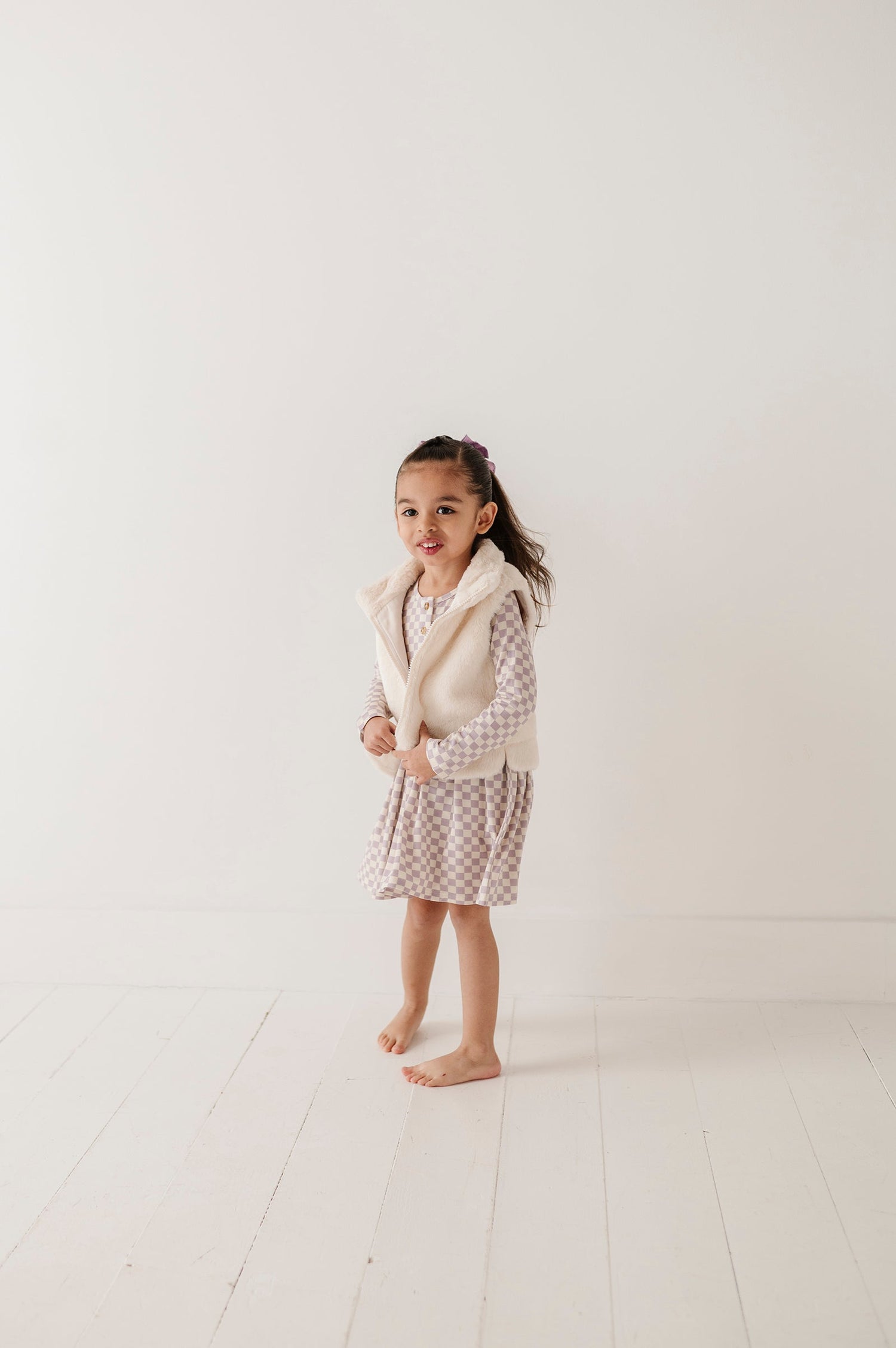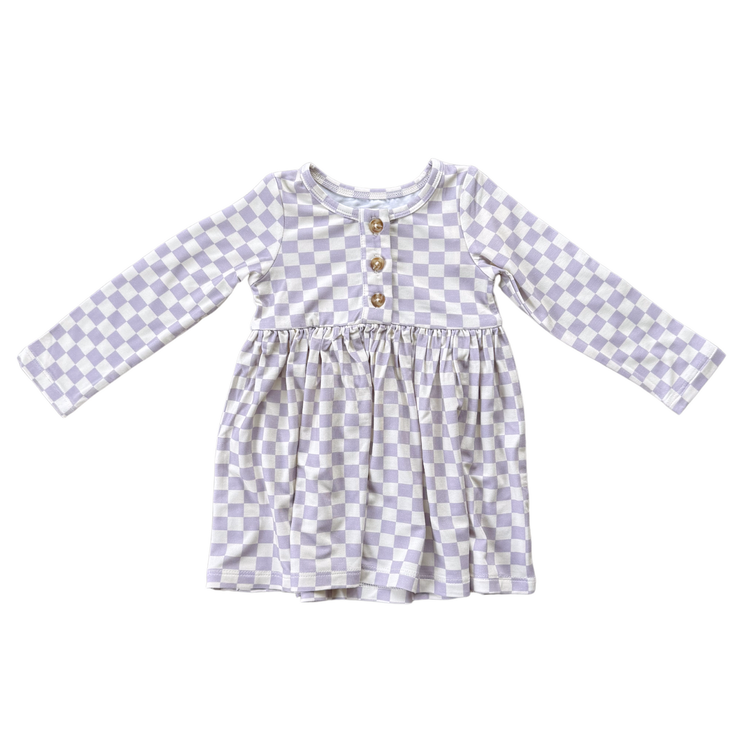 Long Sleeve Henley Dress - Lavender Cloud Checkered / 12-18M is backordered and will ship as soon as it is back in stock.