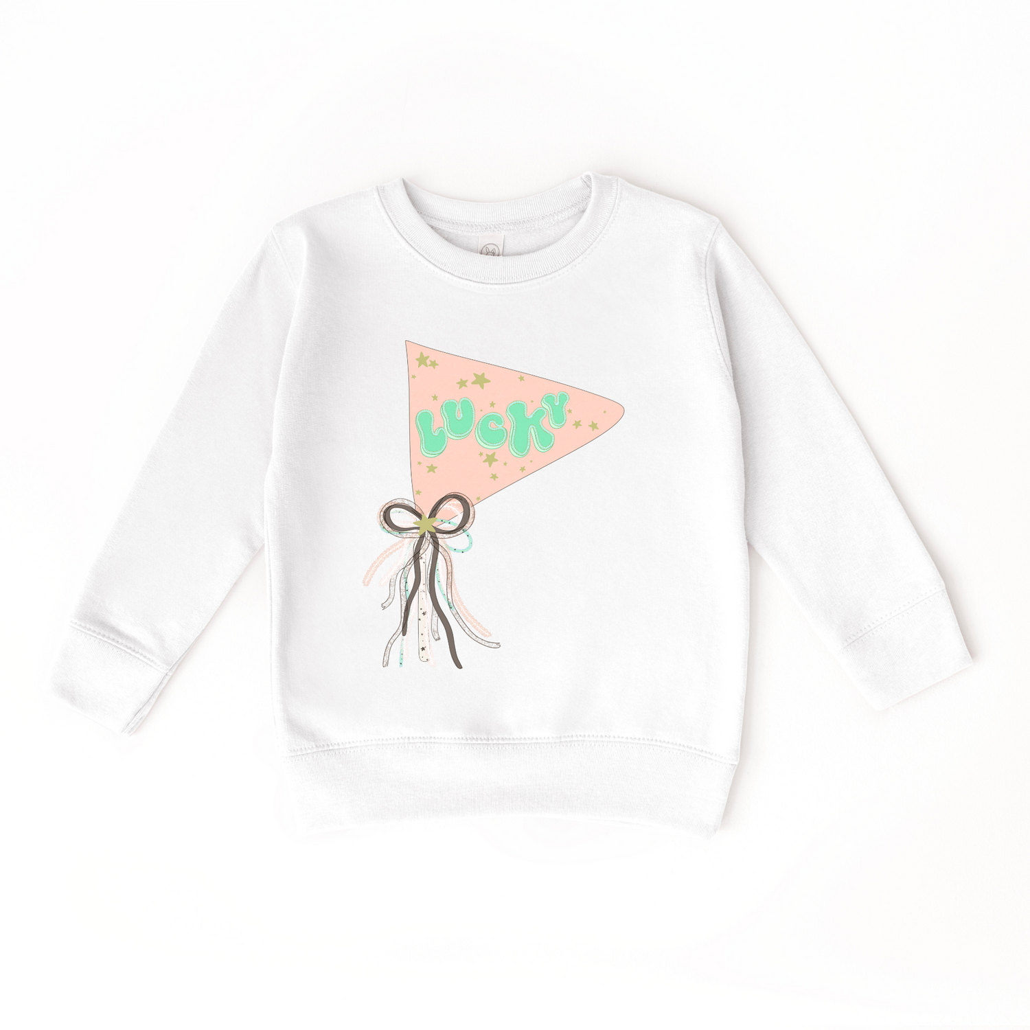 Lucky Girl Flag Sweatshirt - 2T / White is backordered and will ship as soon as it is back in stock.