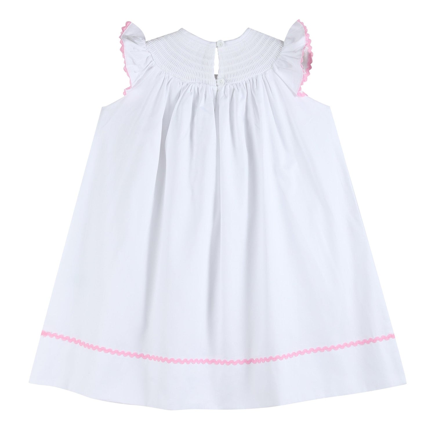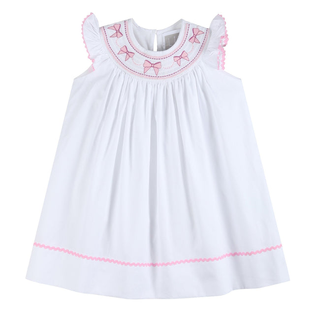 White and Pink Bows Smocked Bishop Dress