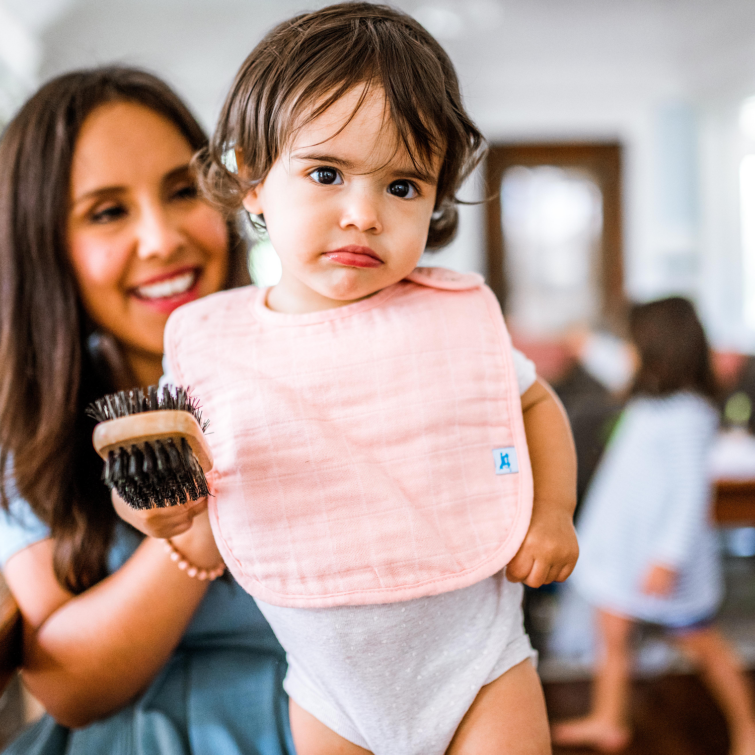 Soft and absorbent, our multi-layer bibs are built to handle all of baby's spills and messes. Featuring three unique, hand-painted prints and a snap-on function to ensure a snug fit that grows with your baby.
