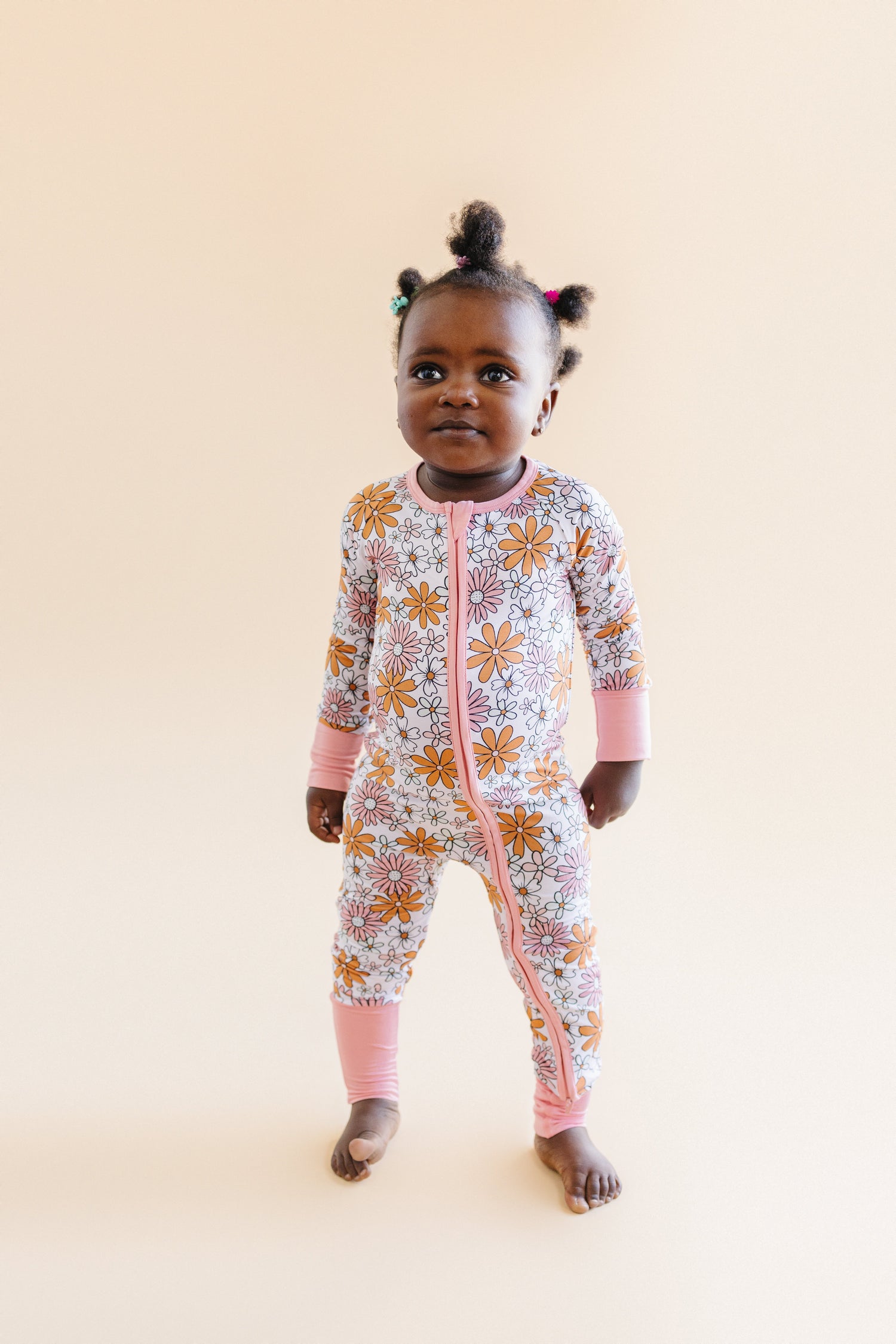 Bamboo Zip Romper | Retro Garden - 3-6M is backordered and will ship as soon as it is back in stock.