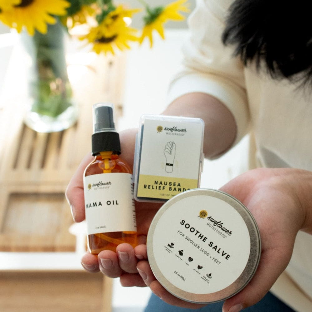 - Mama Pouch, Soothe Salve, Nausea Relief Bands, and Mama Oil