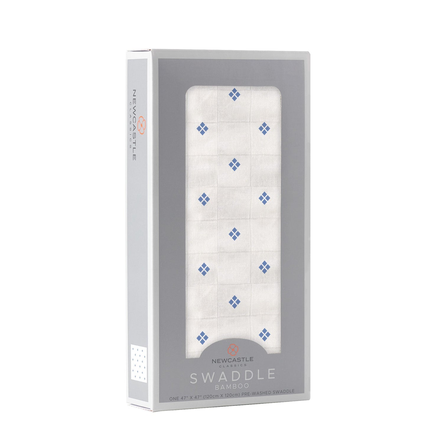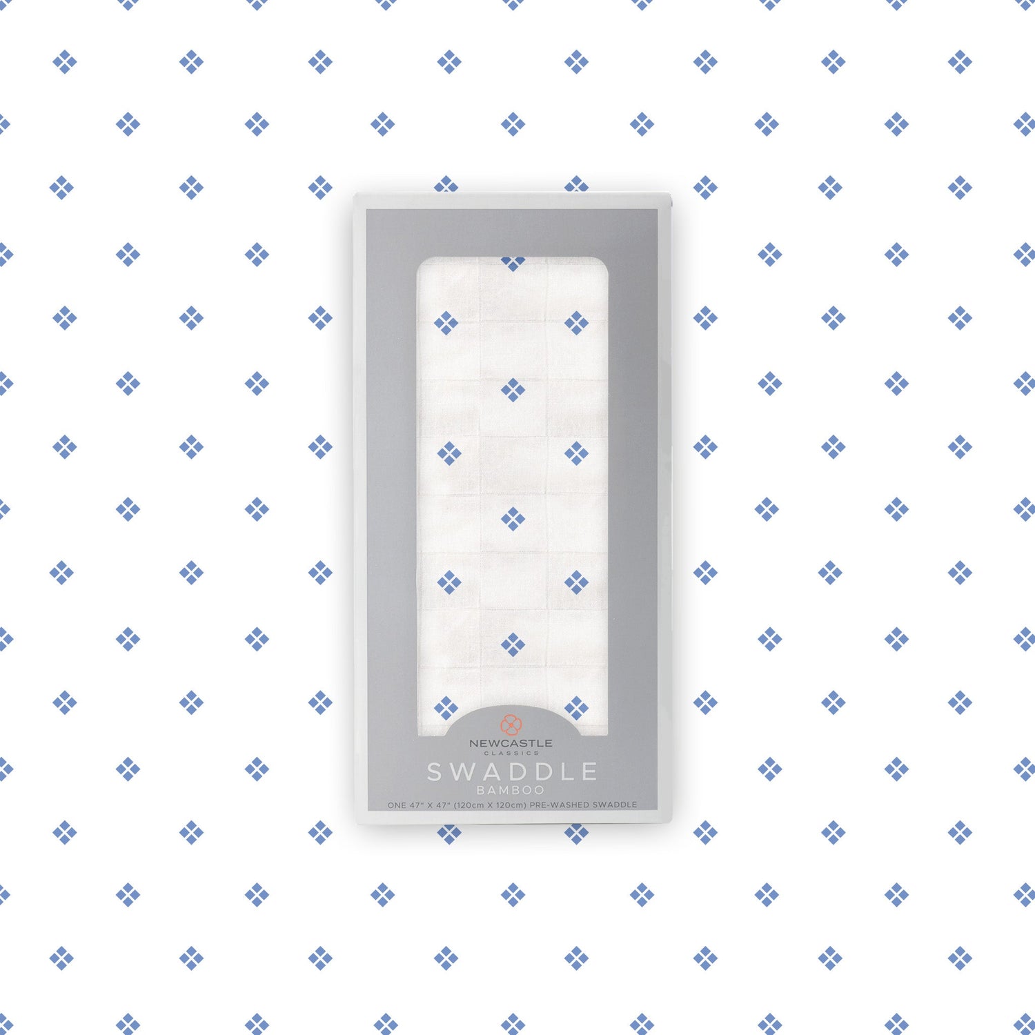 Periwinkle Diamond Polka Dot Swaddle is backordered and will ship as soon as it is back in stock.