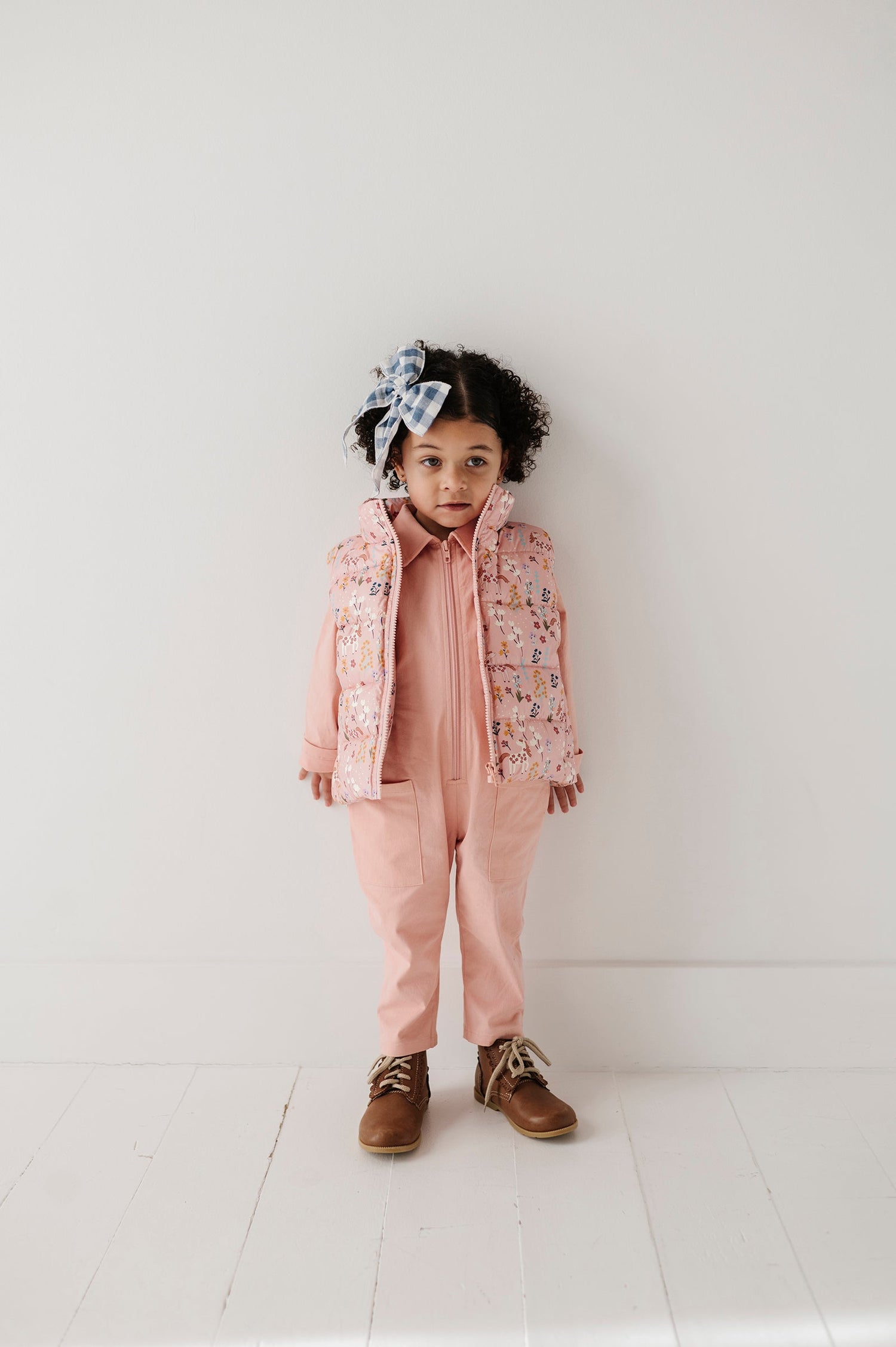 The Utility Jumper combines style and practicality in a versatile design. Made from premium cotton-blend fabric, it’s durable enough to withstand active play while remaining soft and comfortable. Adjustable straps ensure the perfect fit, and functional pockets provide ample storage for small treasures.