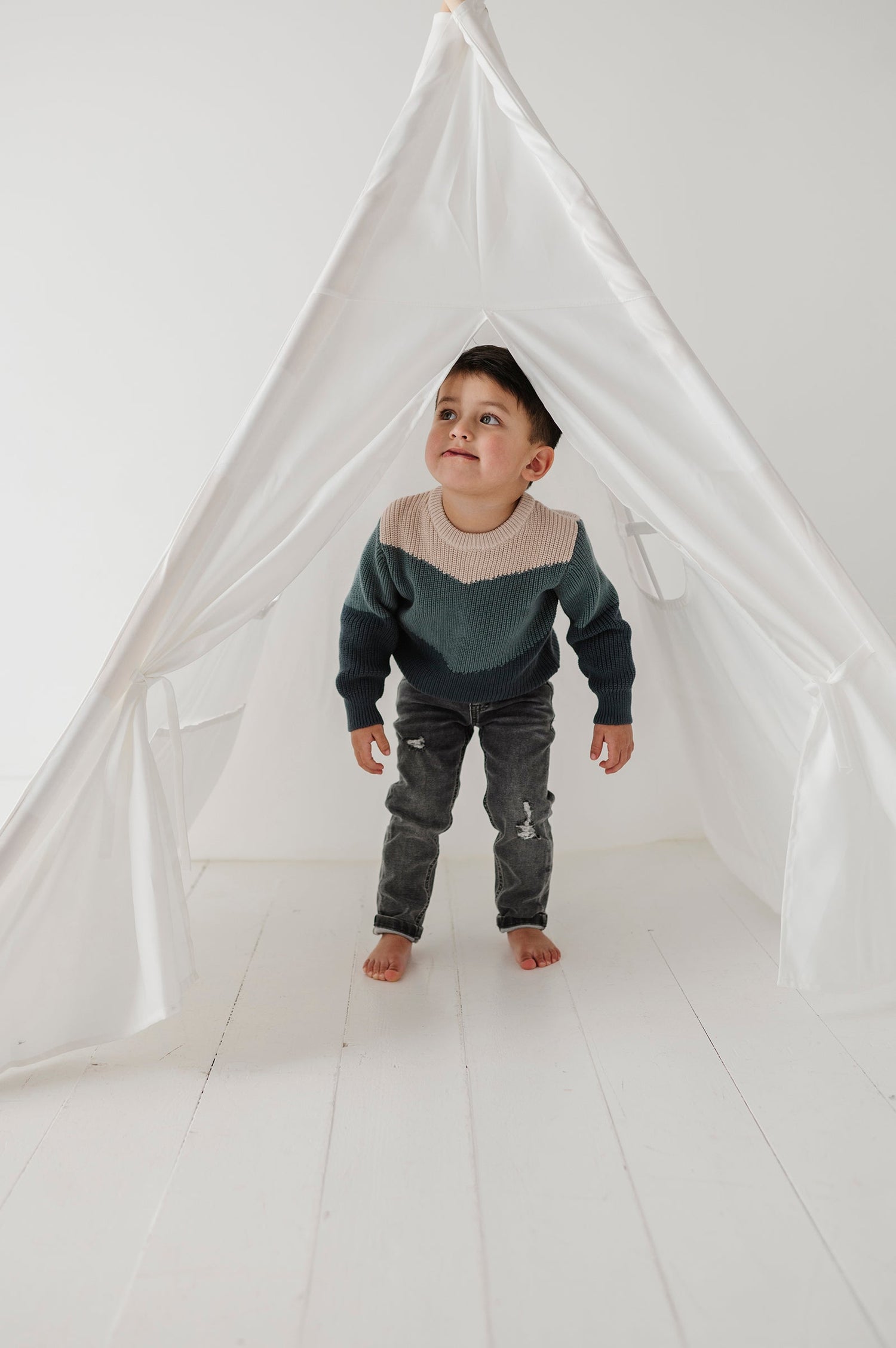 Parents will appreciate its durable stitching and easy-care fabric, which holds up through countless washes and wears. Whether your child is headed to school, a family gathering, or just relaxing at home, the Colorblock Knit Sweater is sure to become a favorite in their wardrobe.
