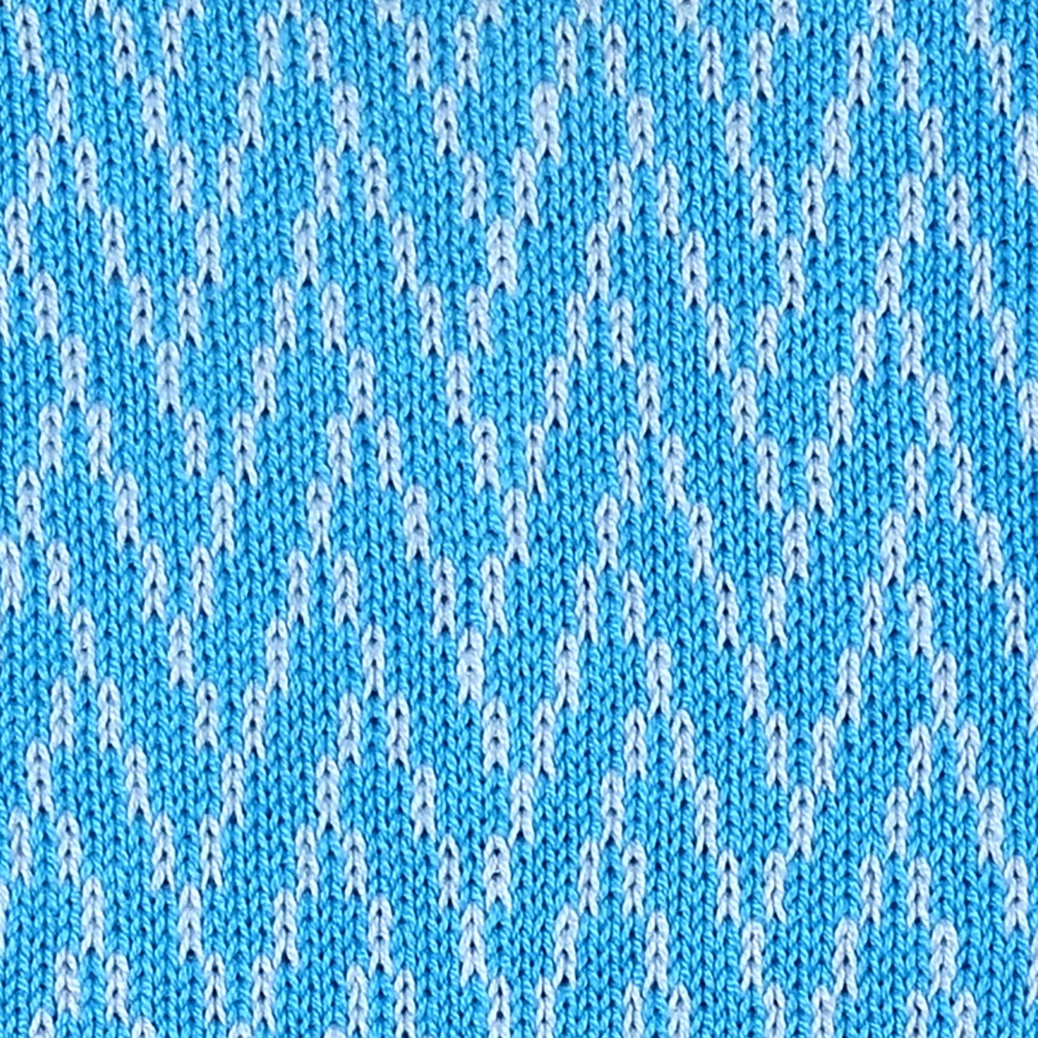 Bring a vibrant and joyful touch to your holiday décor with this colorful knit holiday stocking. The stocking features a lively blue herringbone pattern that creates a striking visual appeal, contrasted beautifully by a rich yellow cuff adorned with red accents. The heel and toe add even more character with a combination of red, green, and yellow, each section displaying its unique pattern for a playful and eclectic design.
