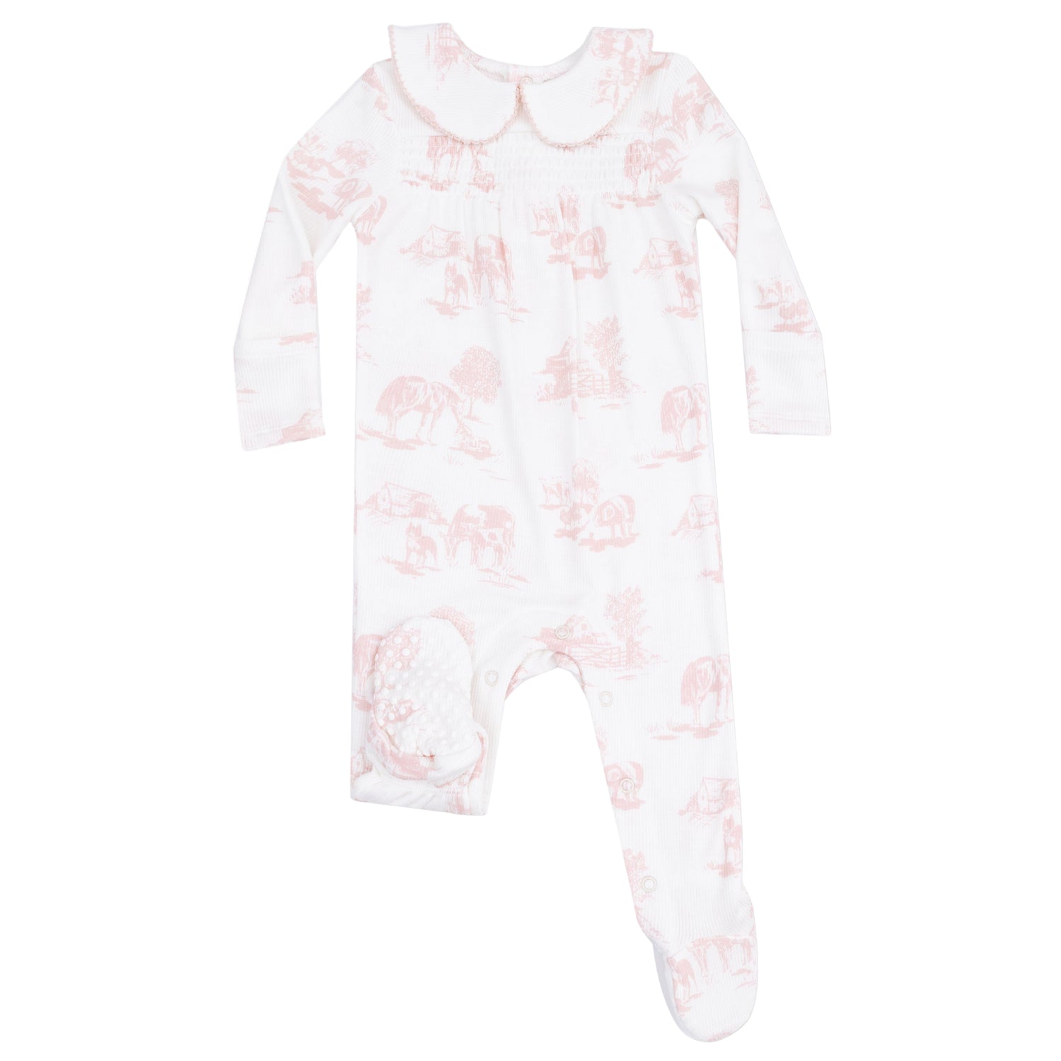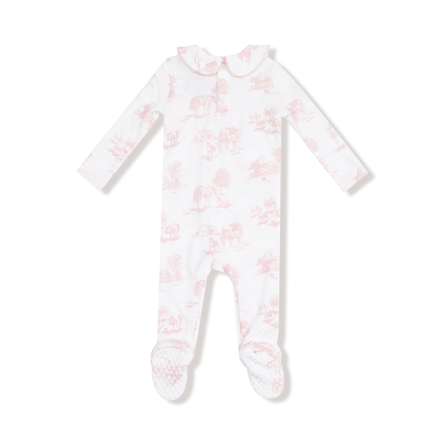 Peter Pan 2 Way Zipper Footie - Farm Toile - Pink