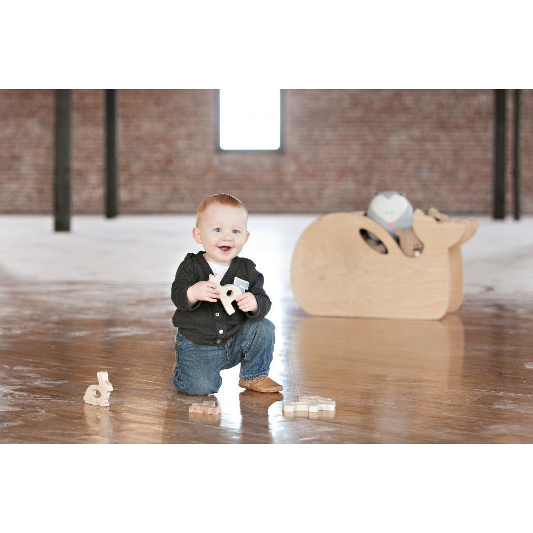 This giraffe grasping toy is made using hard maple which is naturally resistant to bacteria and it is non-splintering wood, so it's safe for baby to play with for hours! It's lightweight and easy to hold, working on all those gross motor skills that are so important early on!