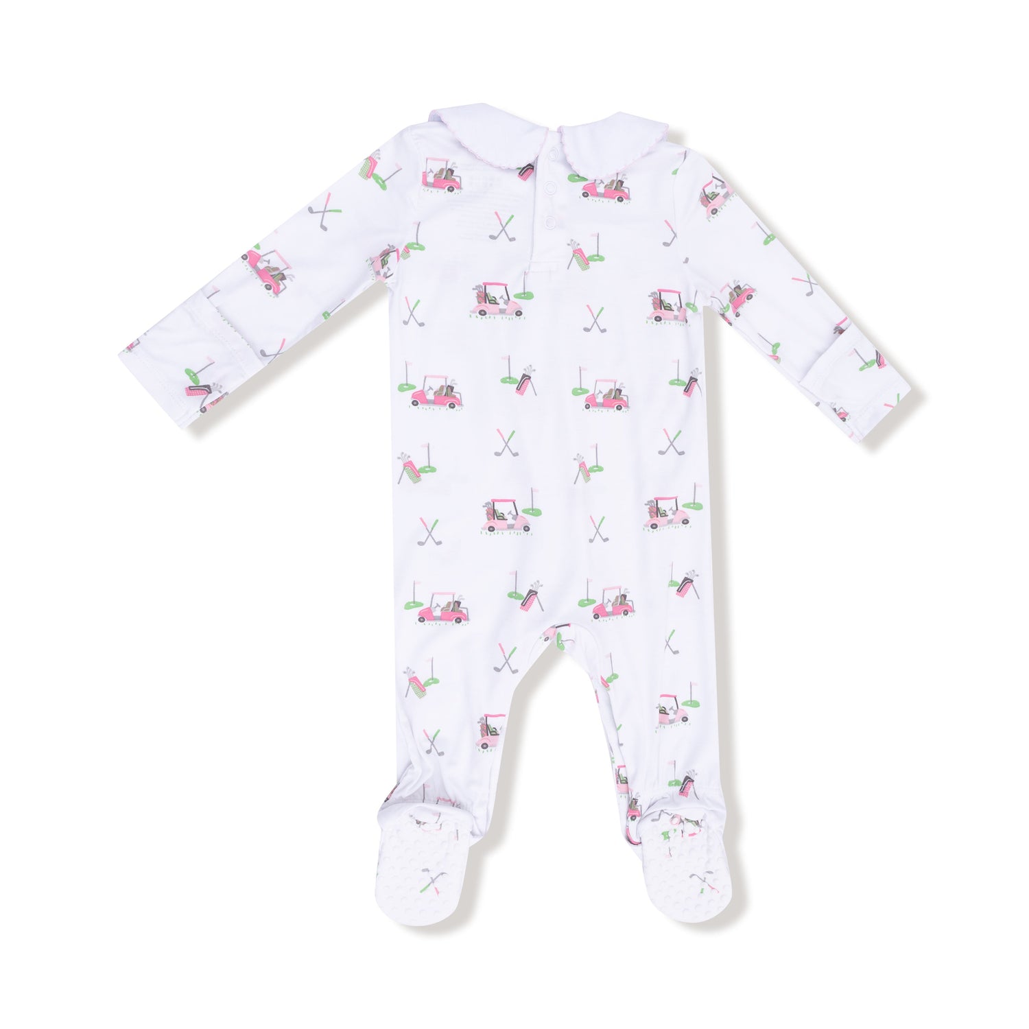 Smocked Peter Pan Snap Footie - Baby Golf Carts - Pink