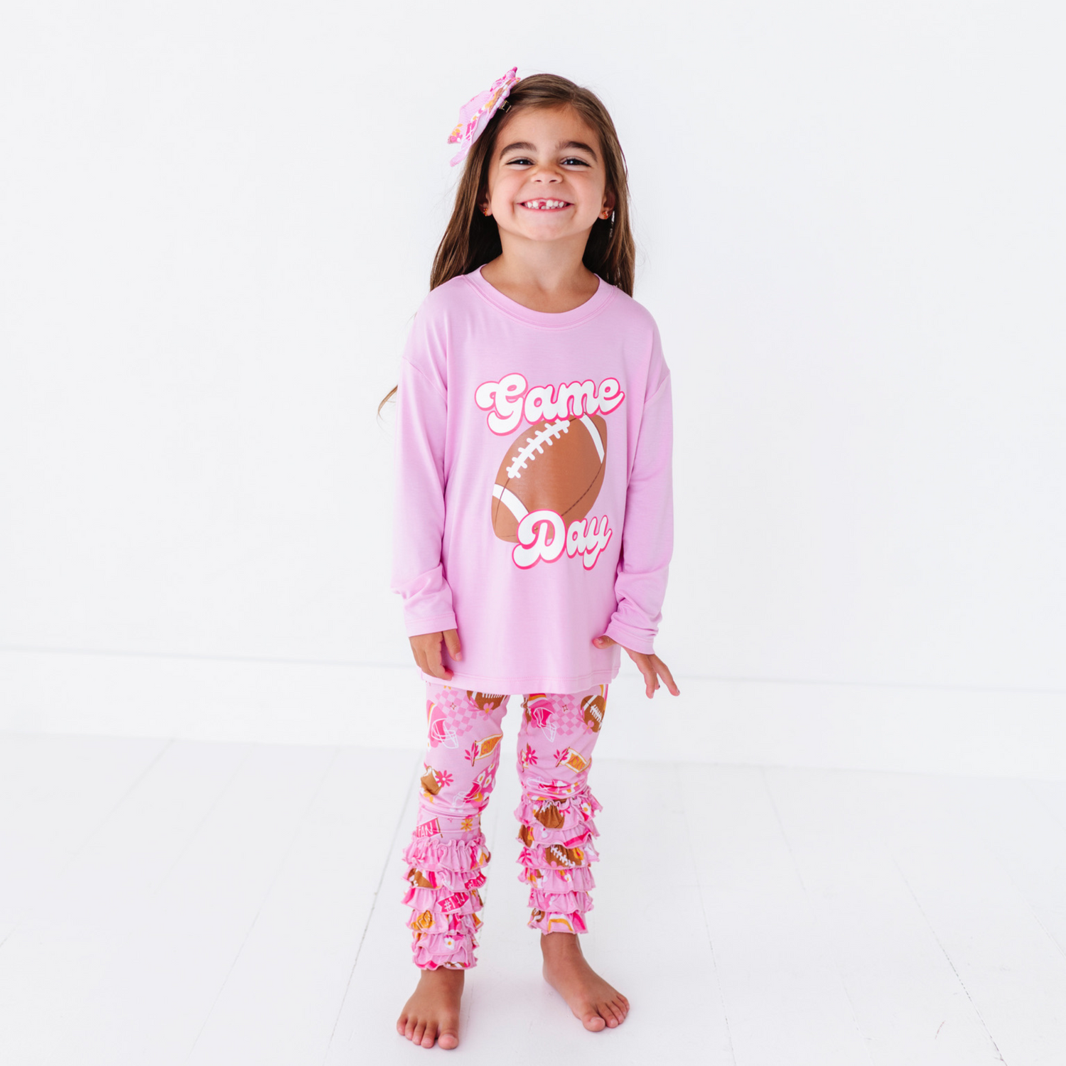 On Game Days We Wear Pink Cha Cha Leggings and Graphic Set - HoneyBug