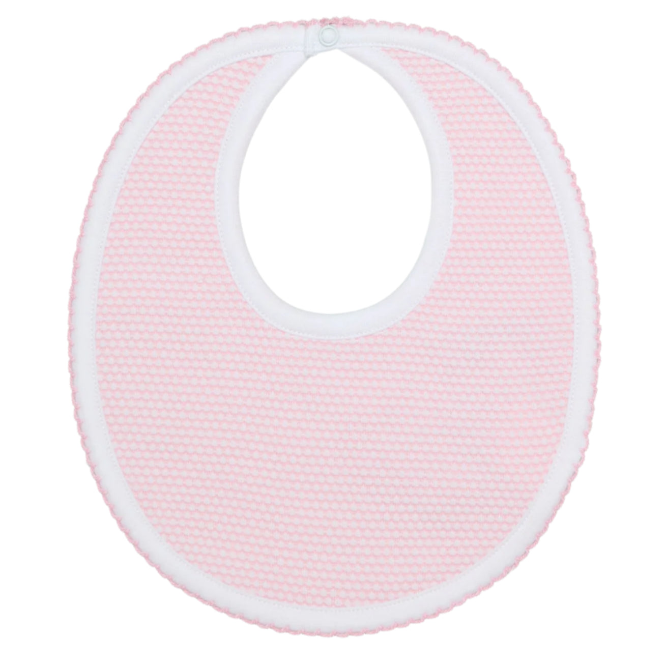 Your little one will look stunning in our Pink Bubble Baby Bib, made of soft bubble fabric with delicate pink picot trim.