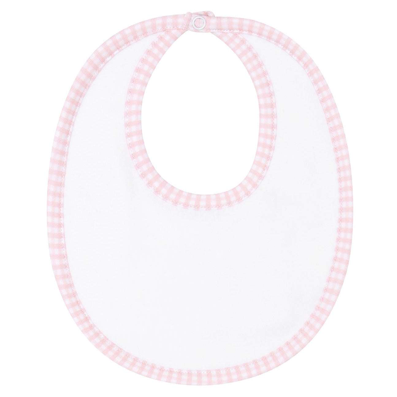 The Pink Gingham Bib is a must-have item to prevent drools and stains. Made from soft and durable 100% Pima cotton, this bib is designed to keep your baby looking stylish while staying clean and dry. It features a charming pink gingham trim and a convenient back closure.