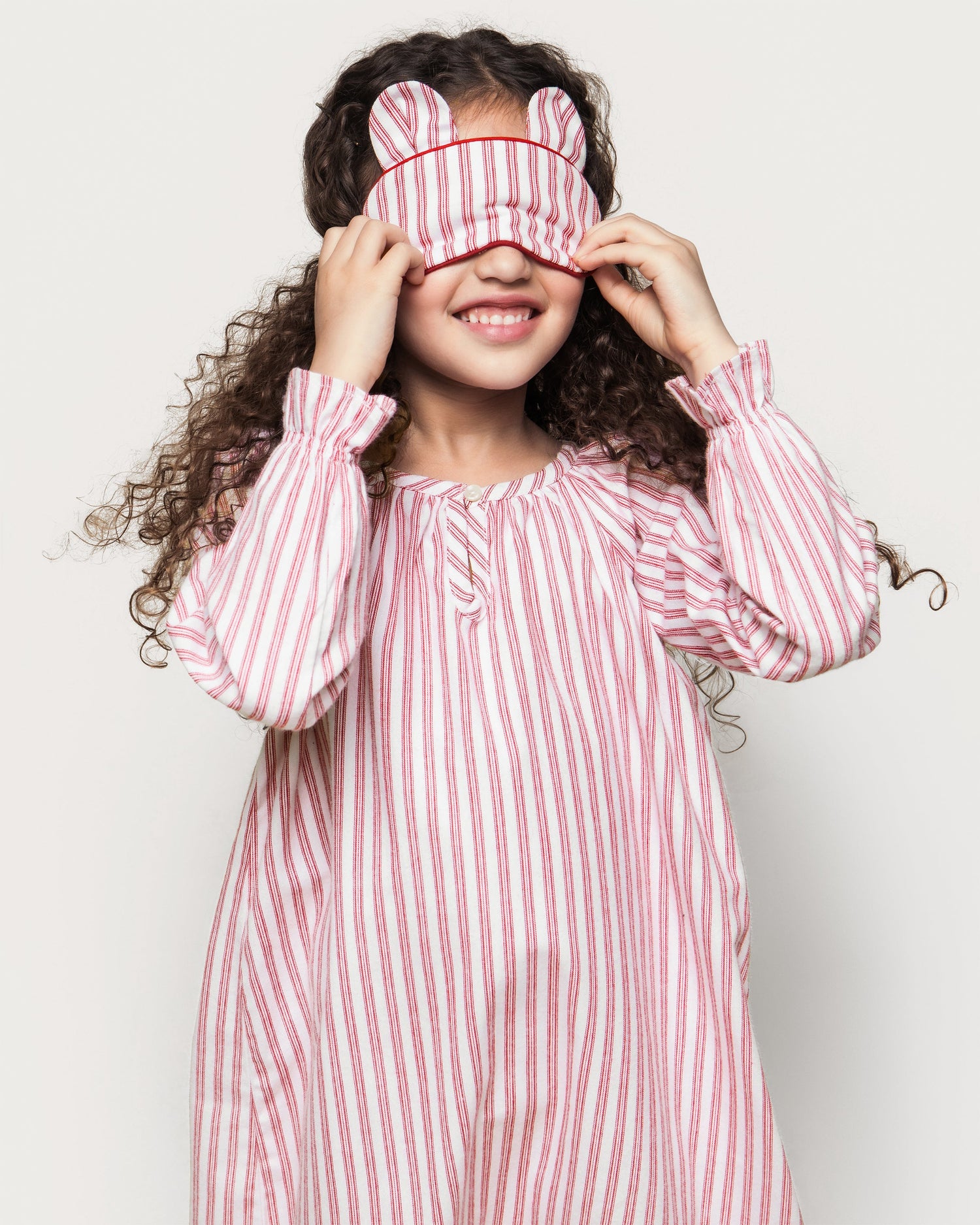 Girl's Twill Delphine Nightgown in Antique Red Ticking